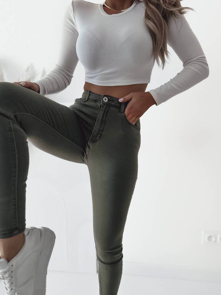 Ciemnozielone dopasowane spodnie z wysokim stanem