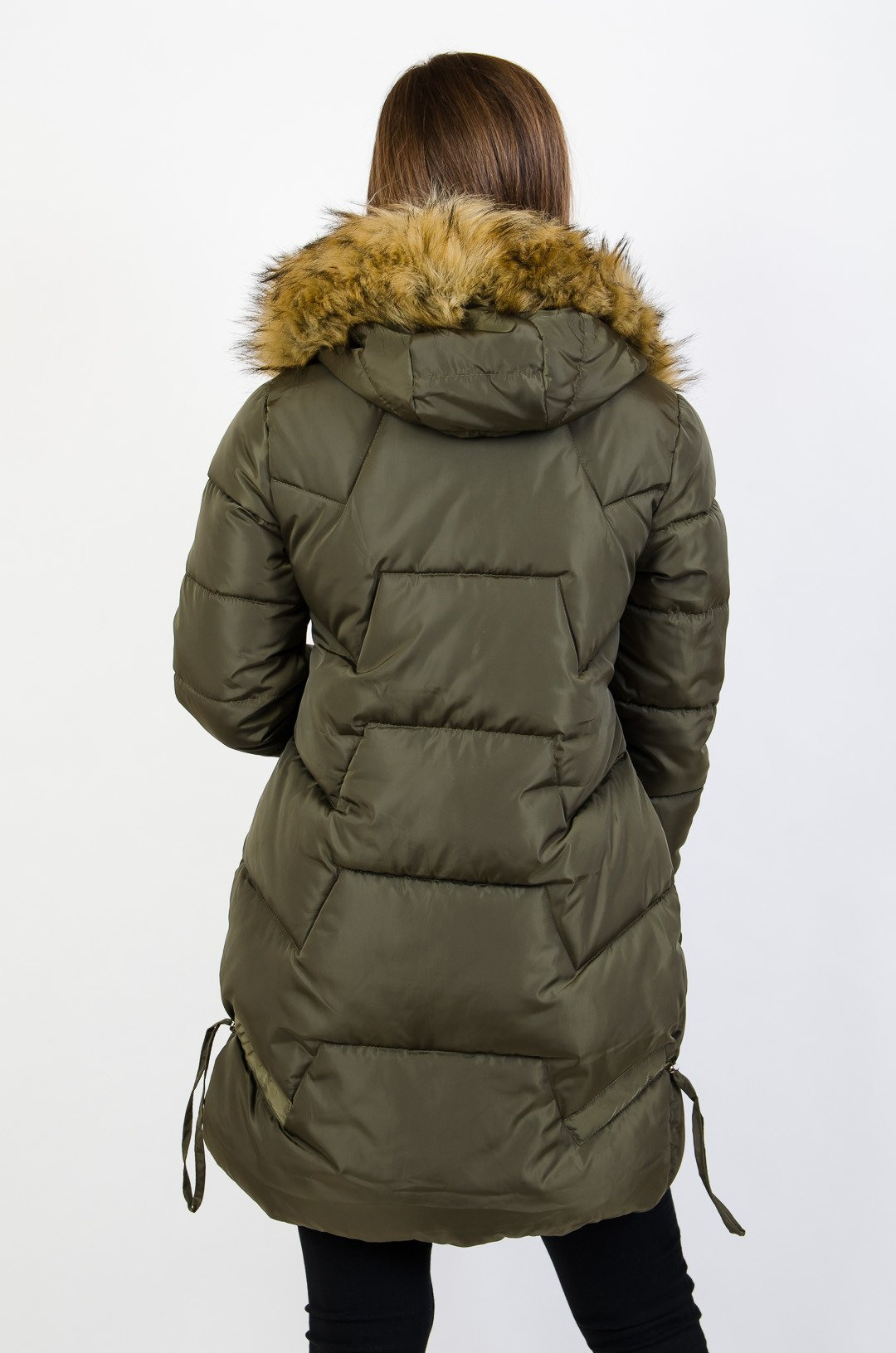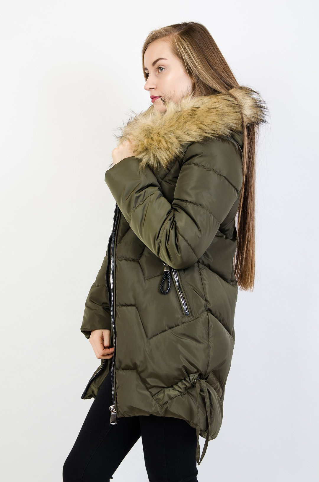 Zielona pikowana kurtka ze srebrnymi zamkami