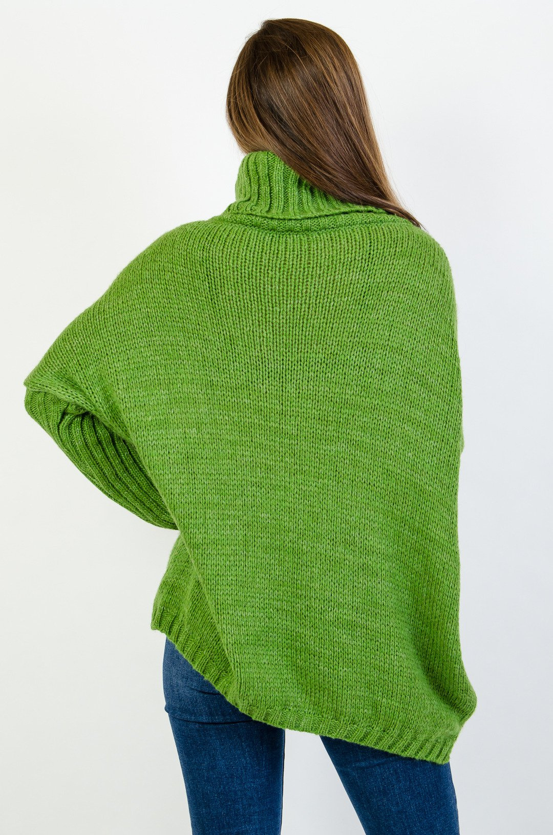 Zielony asymetryczny sweter typu nietoperz z golfem