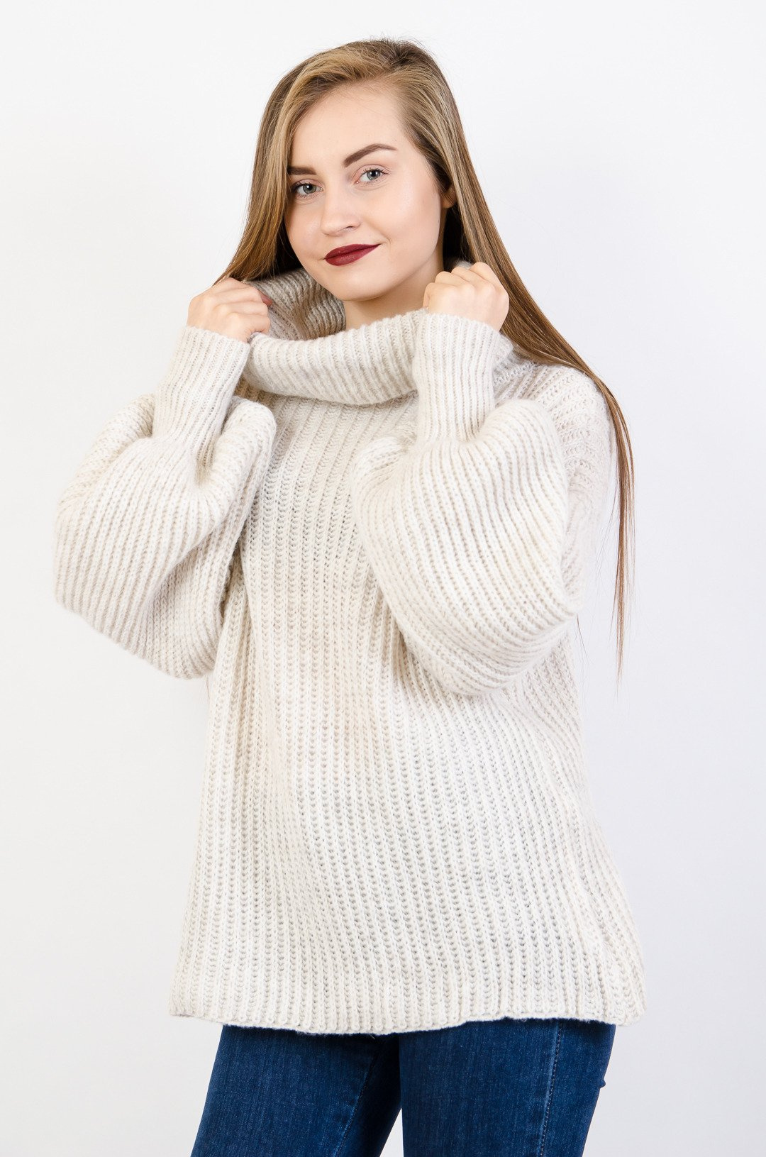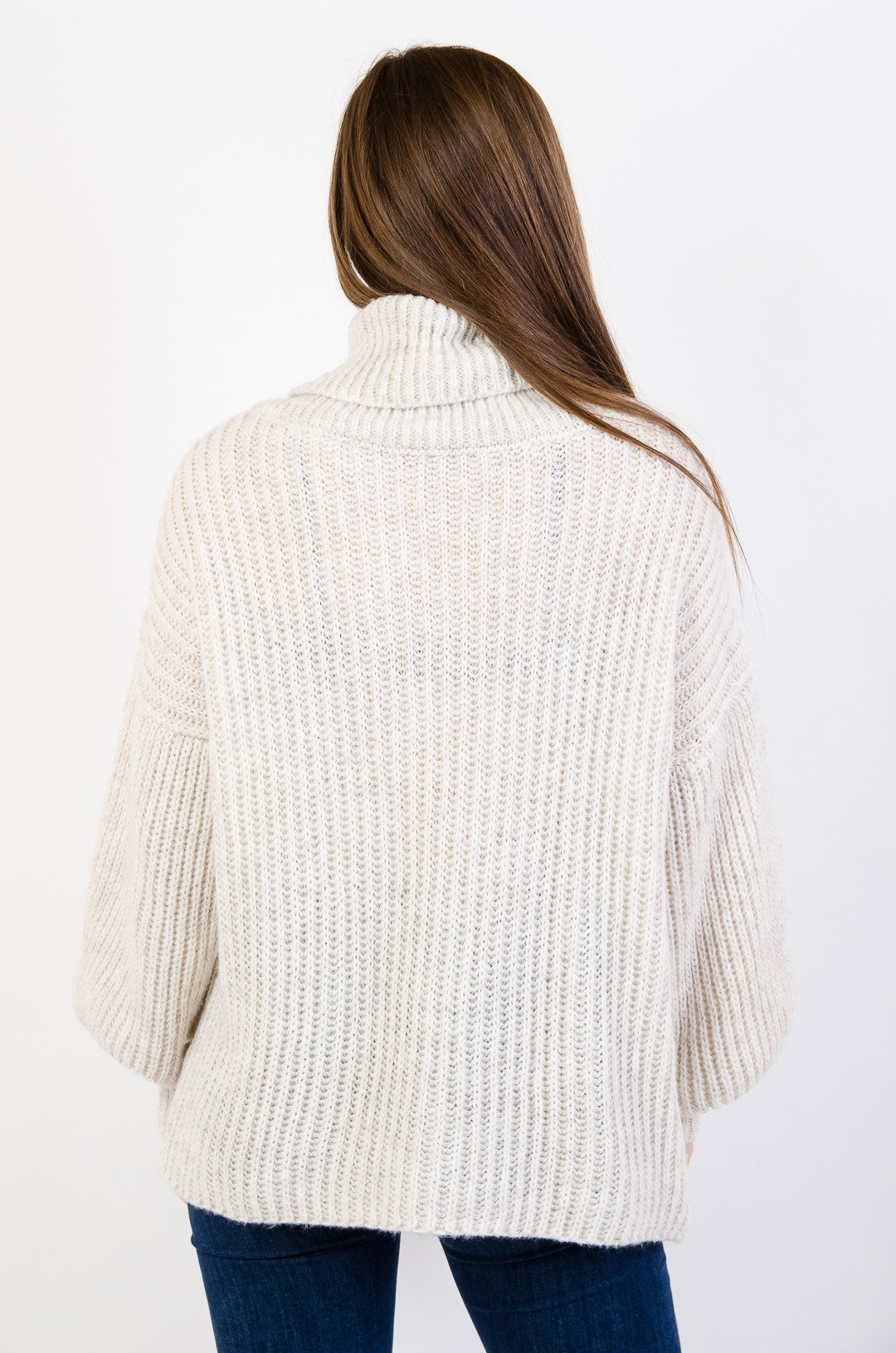 Beżowy golf z bufiastymi rękawami