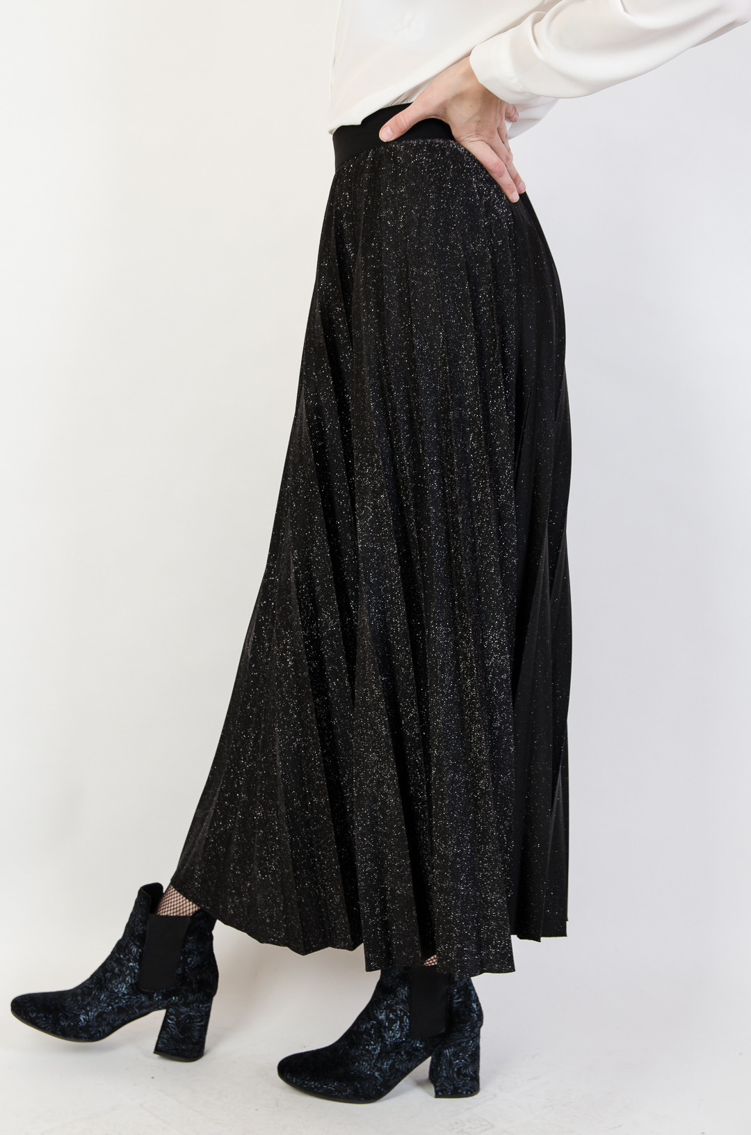 Czarno-brokatowa plisowana spódnica z gumą w pasie