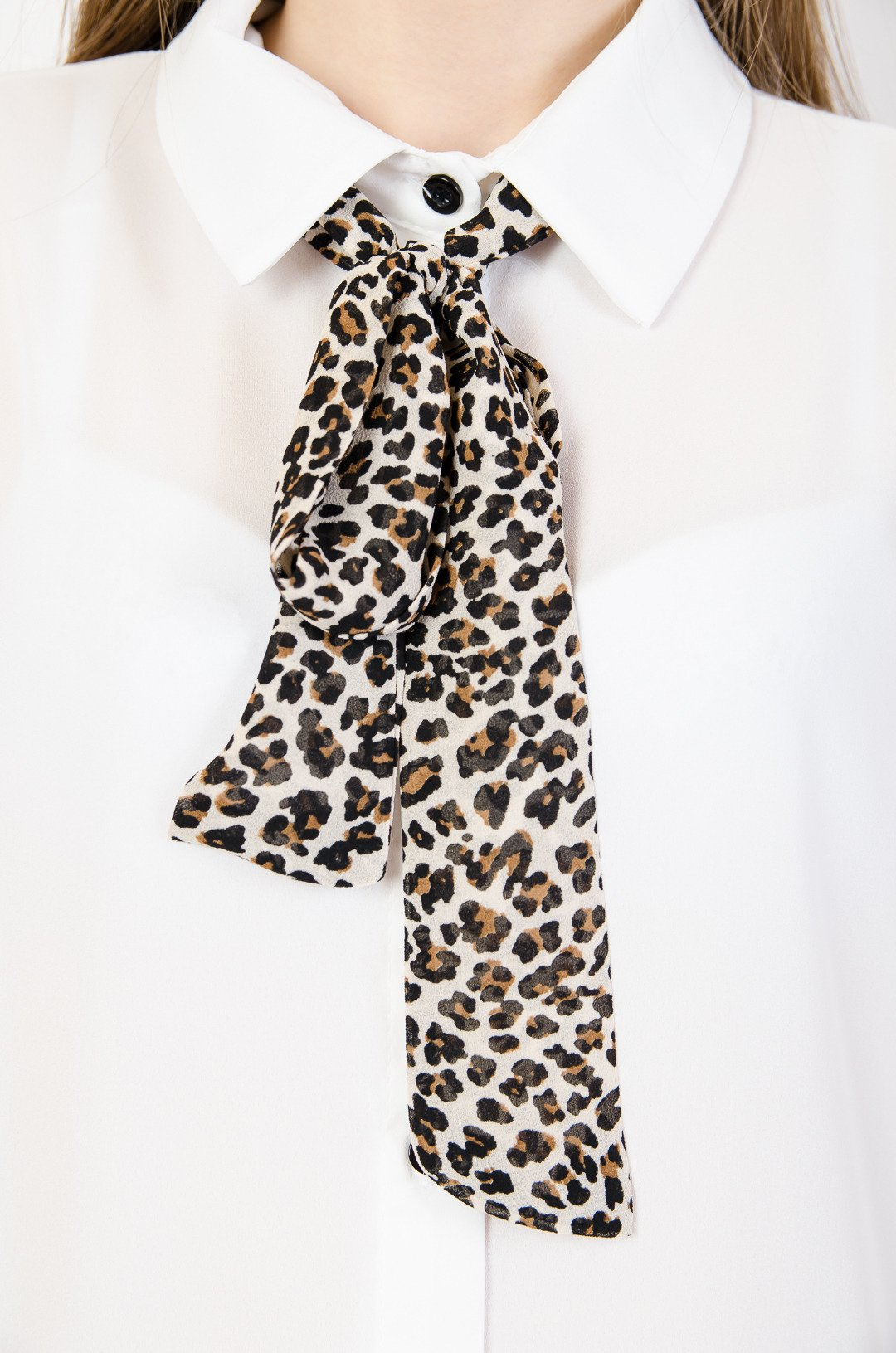 Biała koszula z kokardą przy szyi