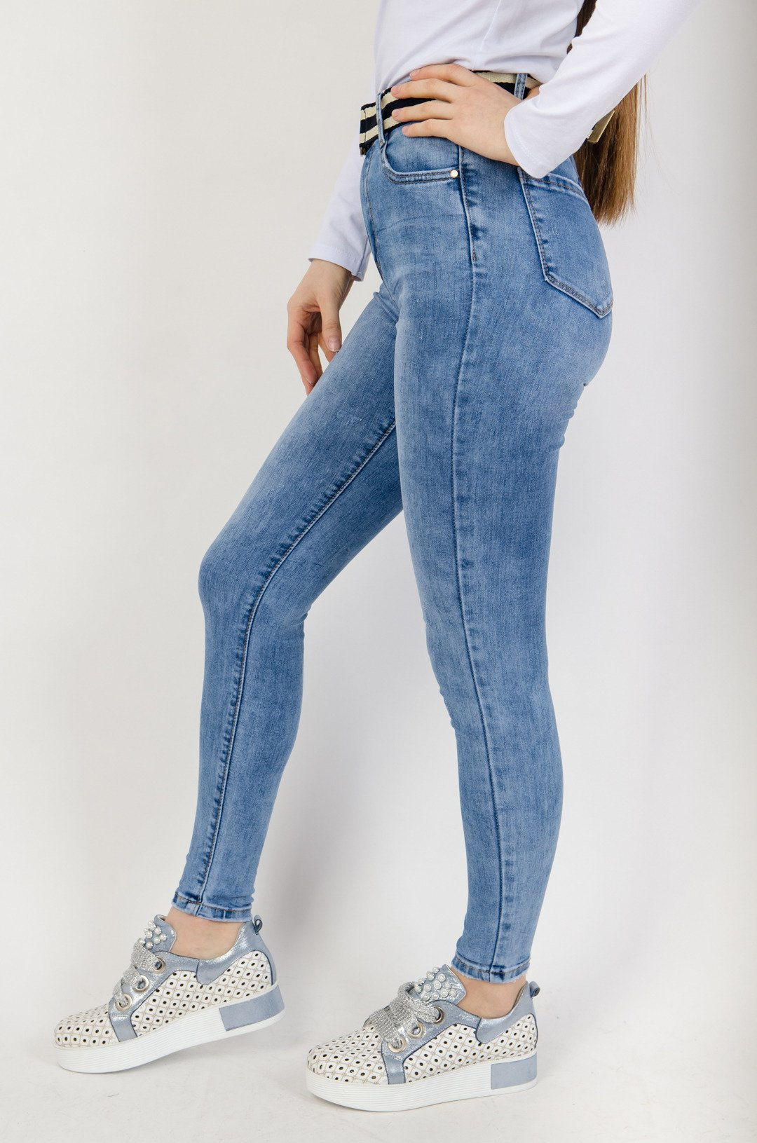 Jasne przejaśniane spodnie jeansowe z wysokim stanem