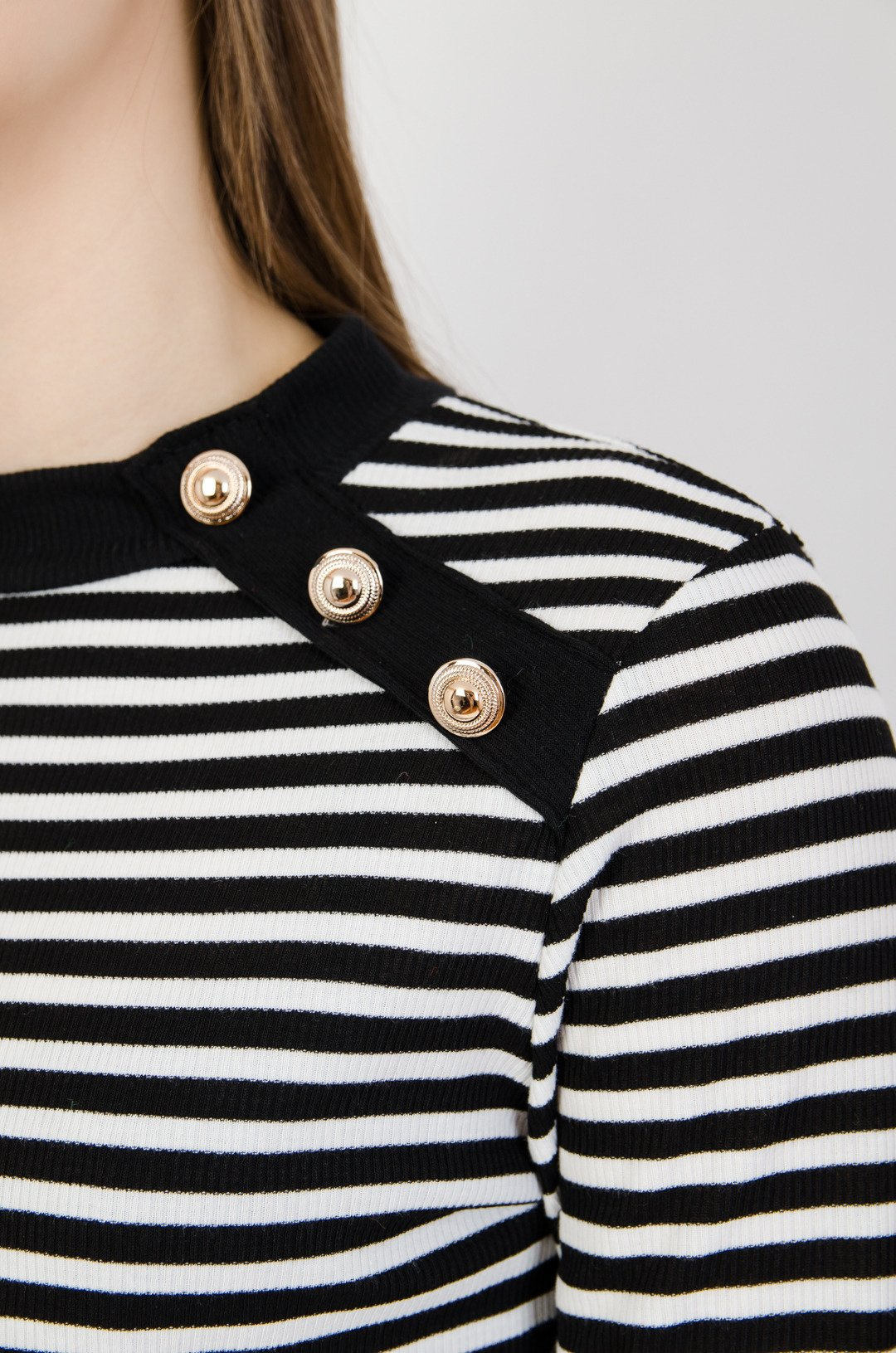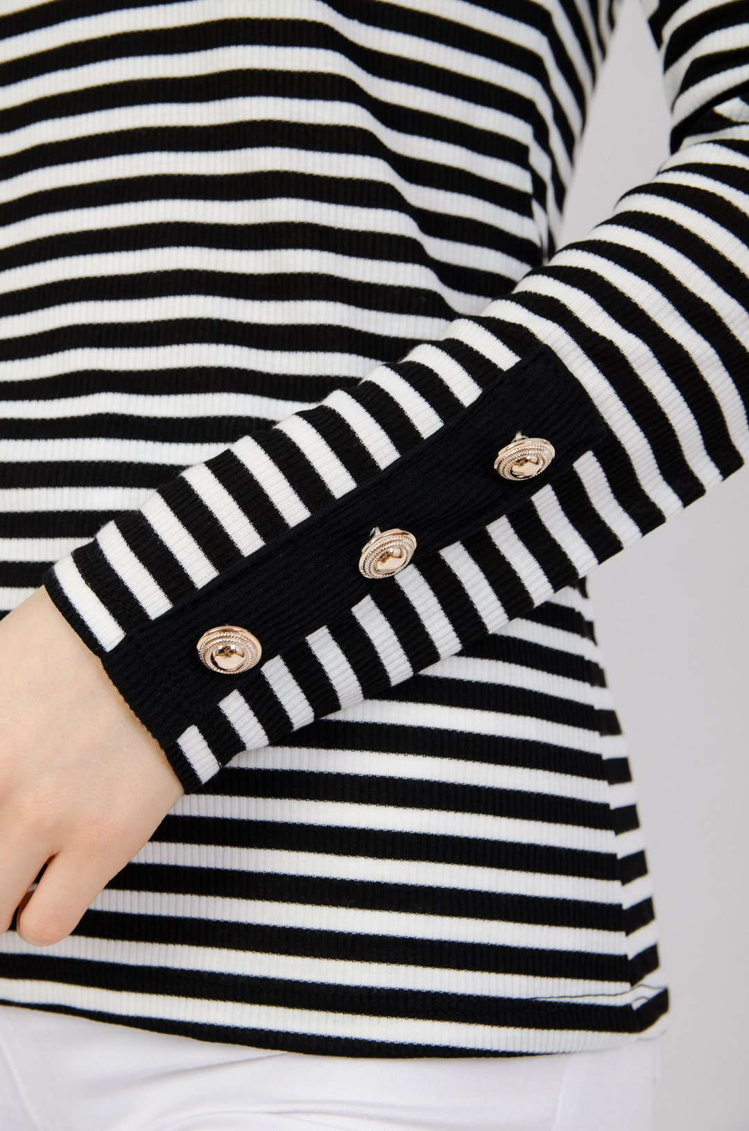Prążkowana bluzka w biało czarne paski ze złotymi guzikami