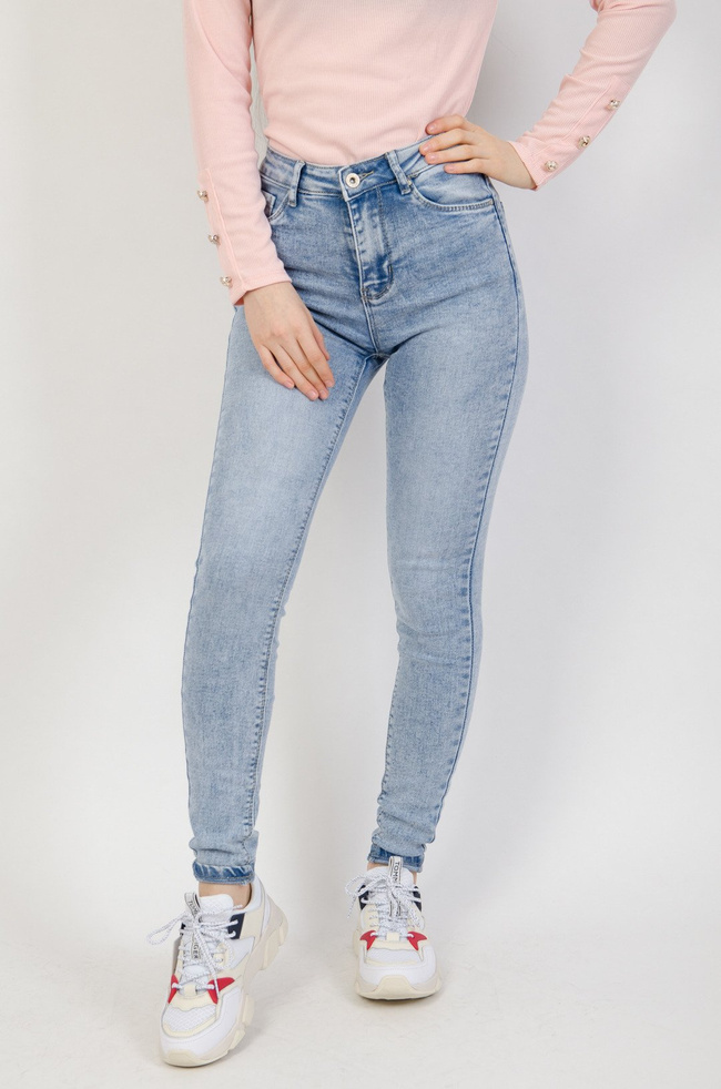 Jasne cieniowane spodnie jeansowe z wyższym stanem