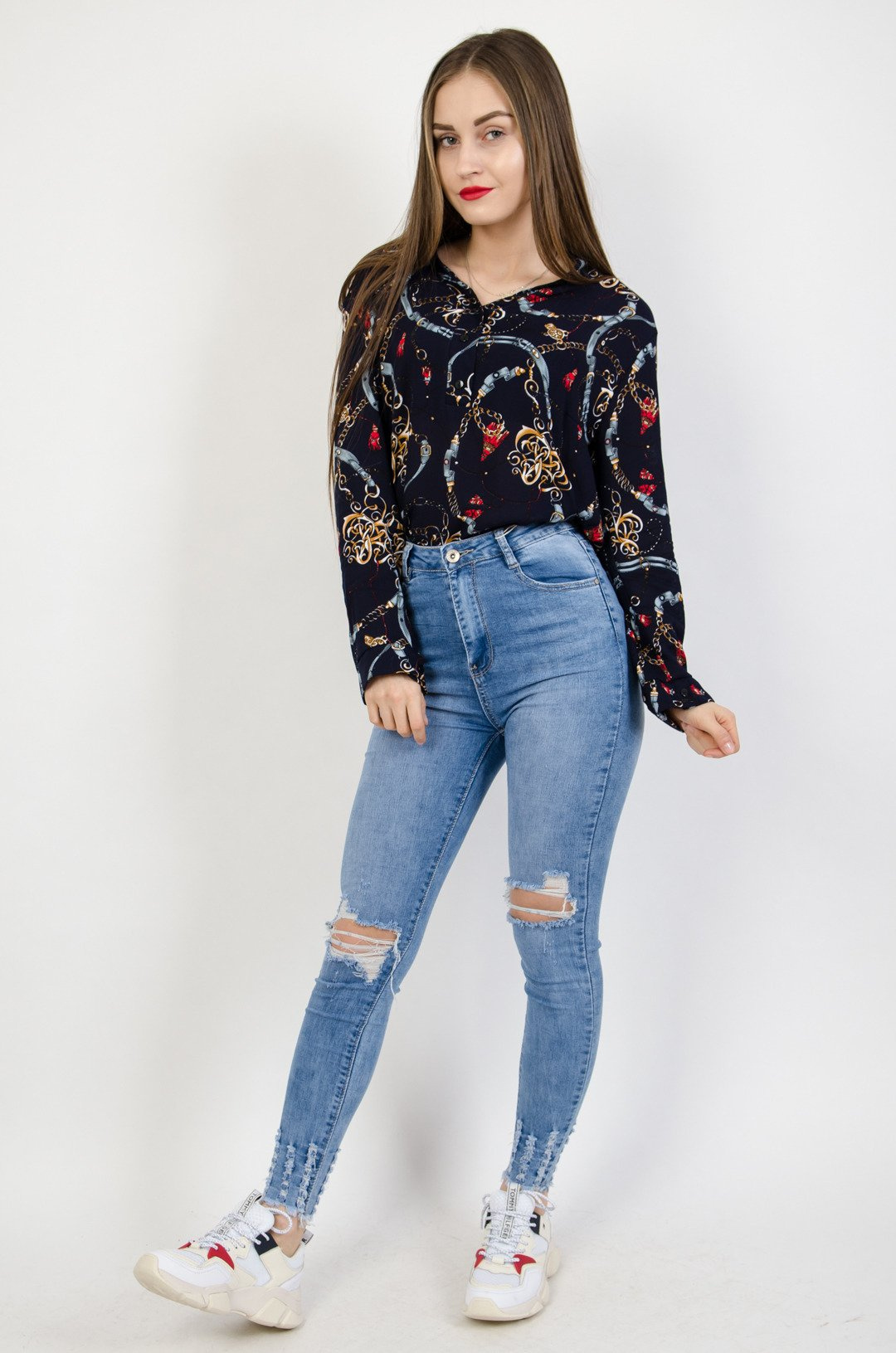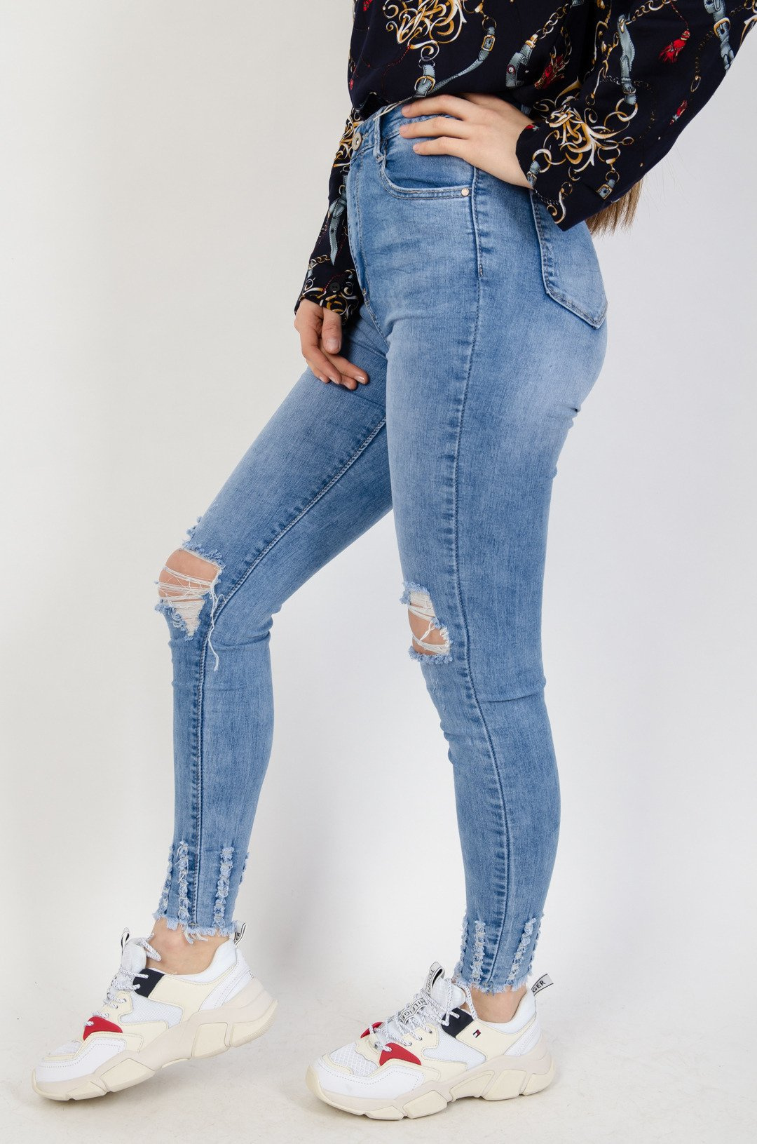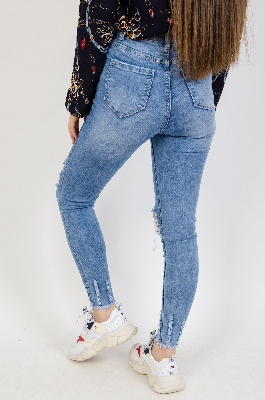Jasne spodnie jeansowe z dziurami