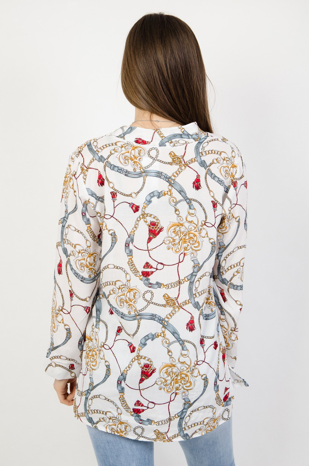 Biała bluzka koszulowa w kolorowe wzory