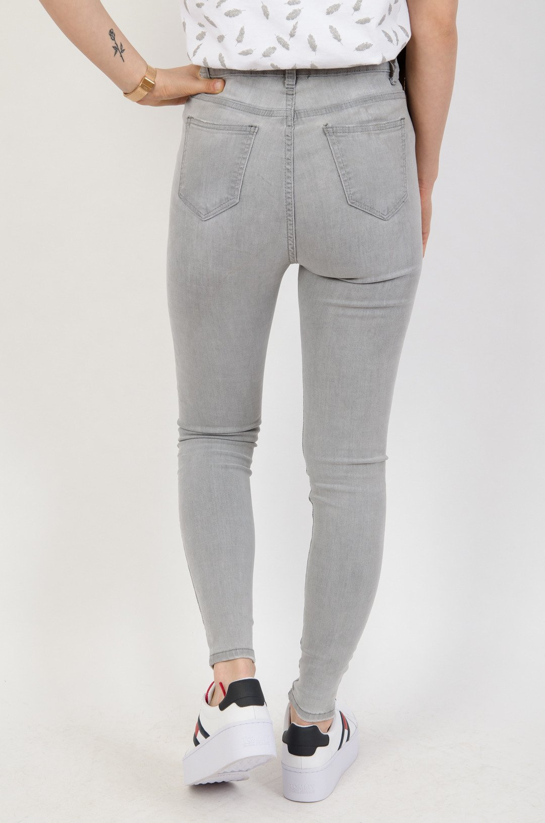 Jasno szare spodnie jeansowe z przetarciami