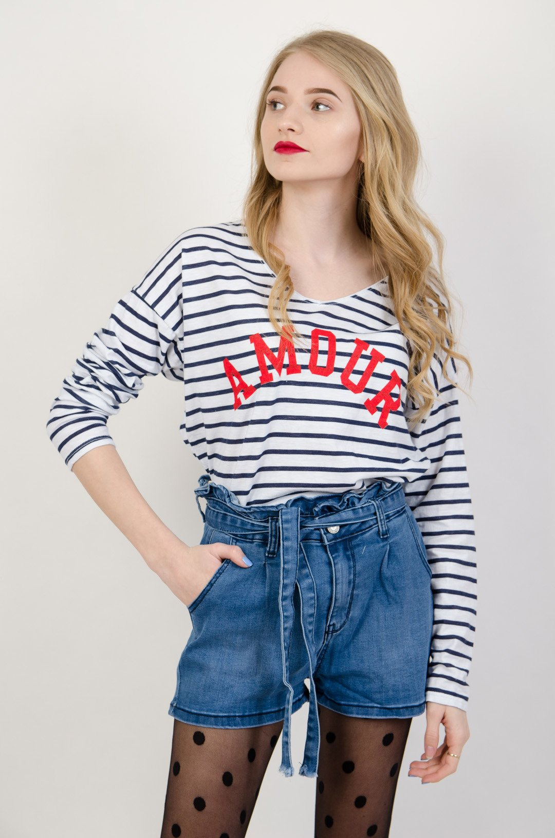 Biała bluzka Oversize w paski 'Amour'