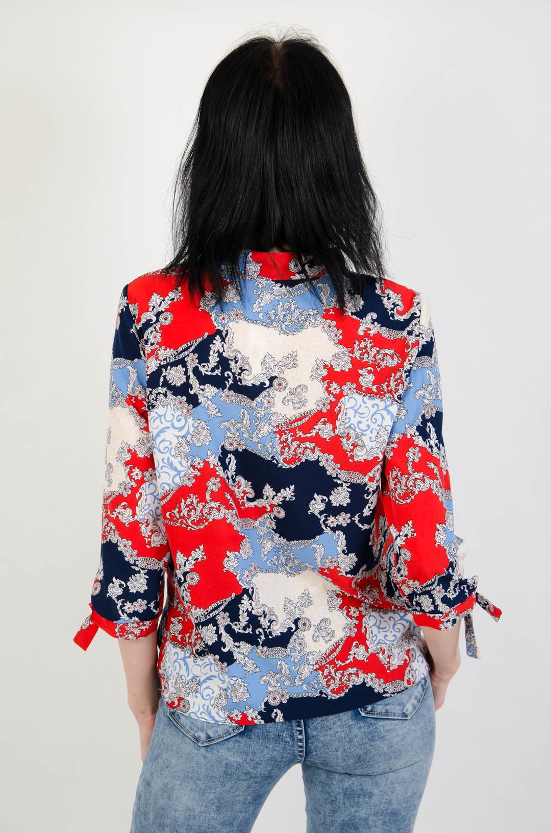 Wzorzysta bluzka z wiązaniem przy dekolcie