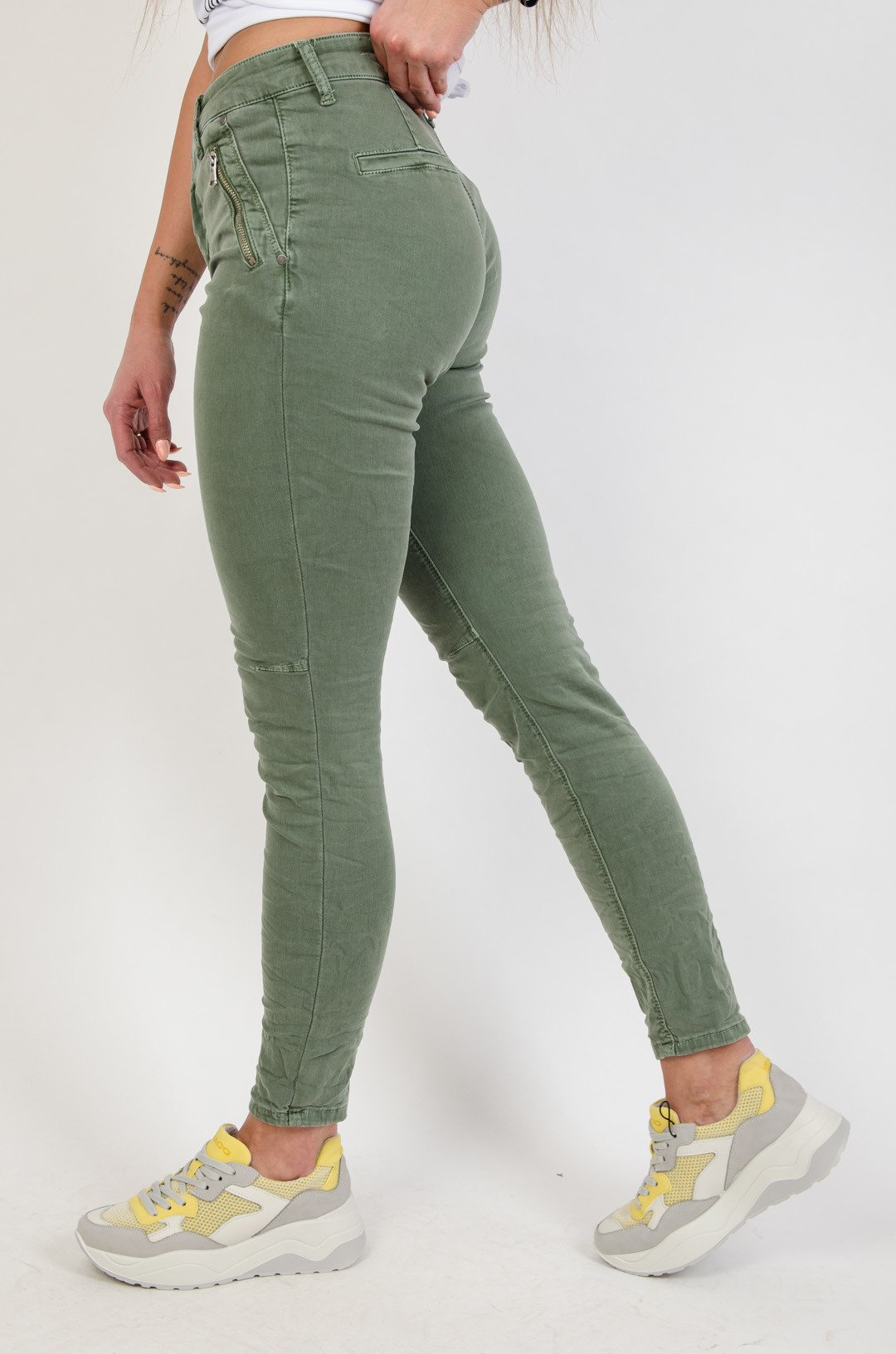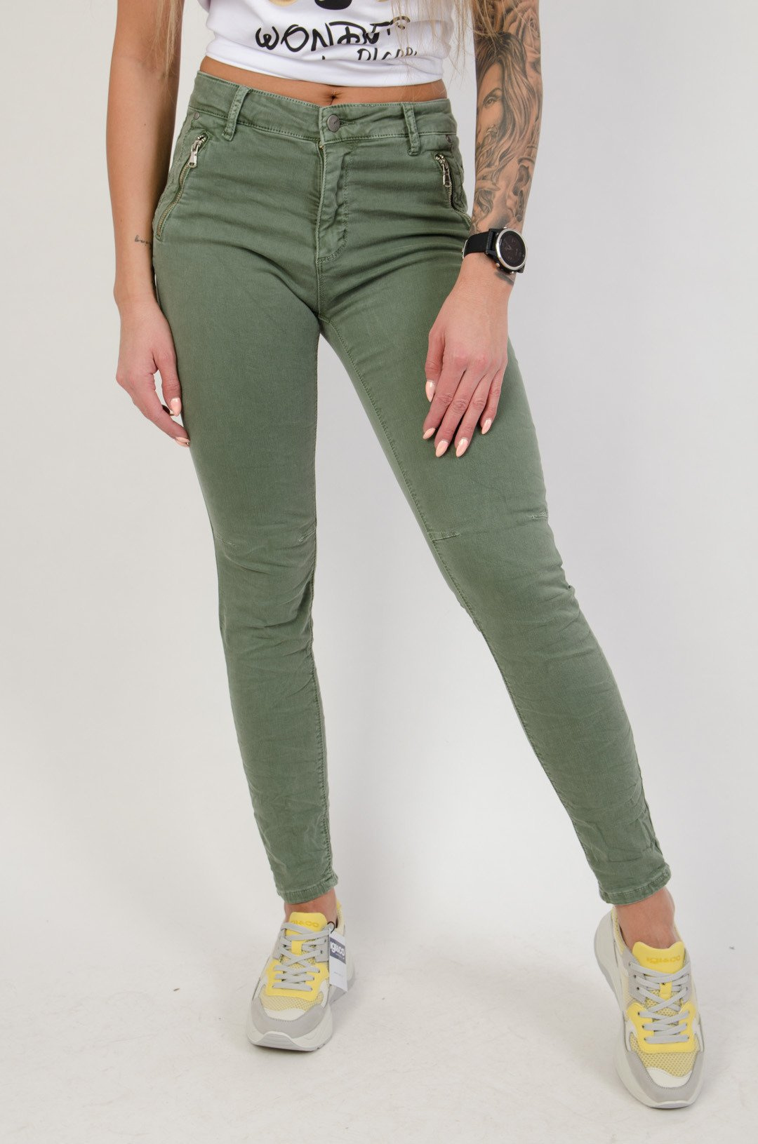 Zielone spodnie joggery z zamkami przy kieszeniach