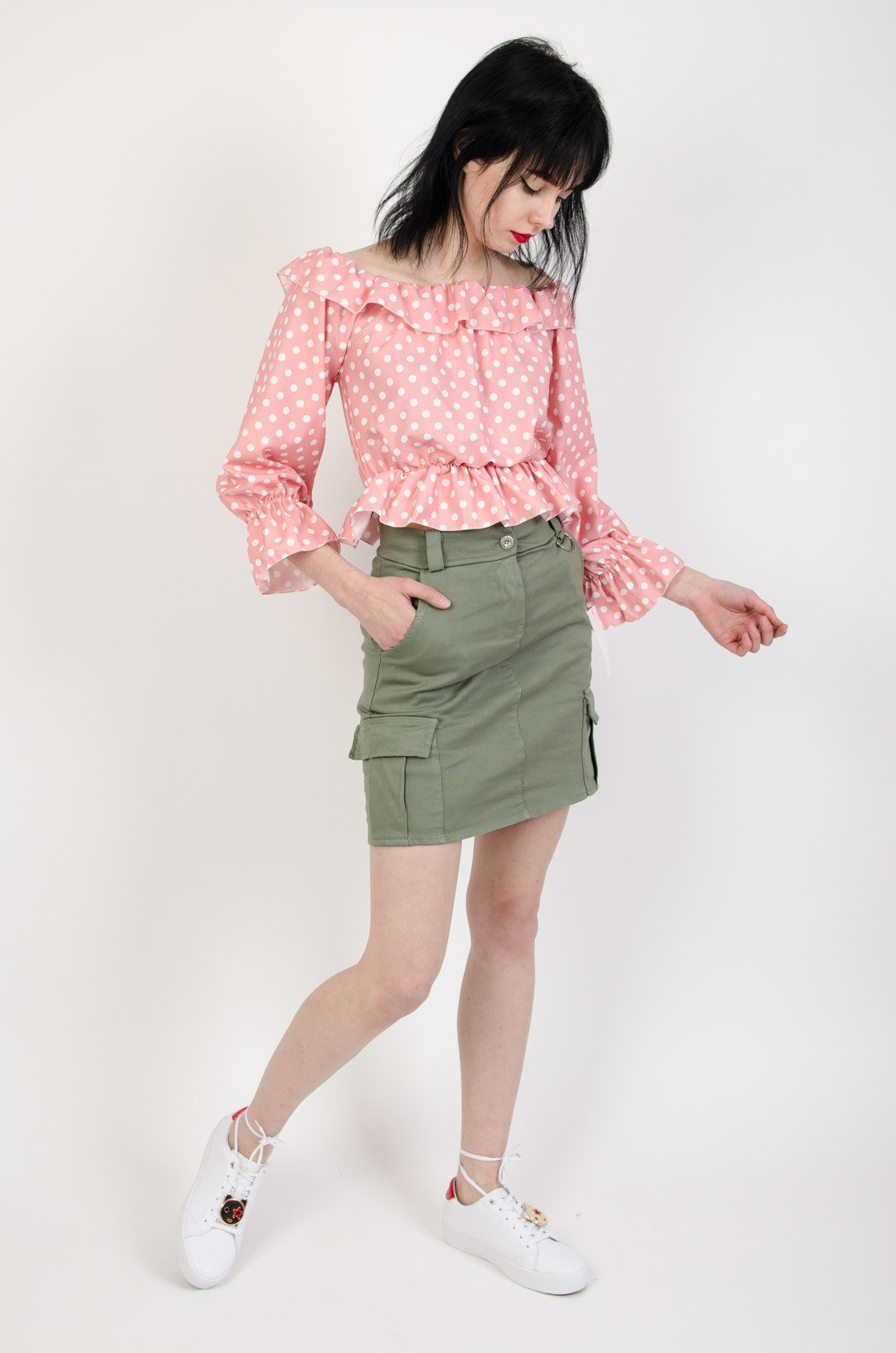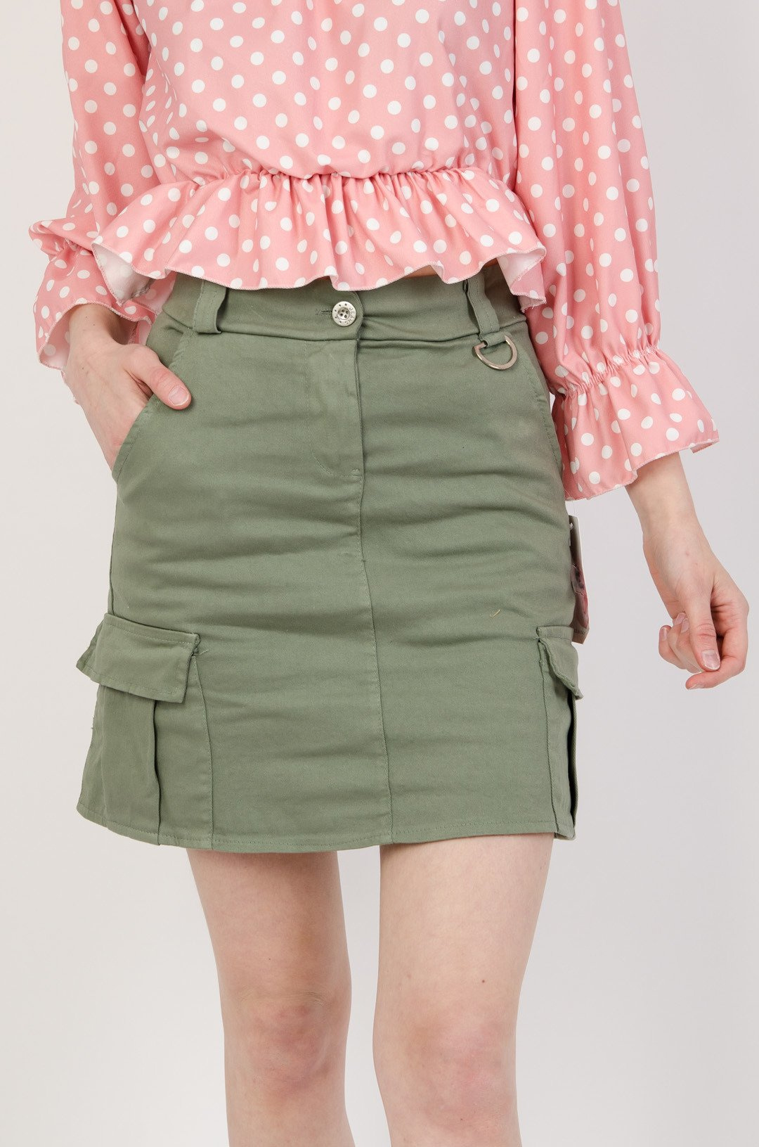Zielona spódnica z kieszeniami a`la Bojówka