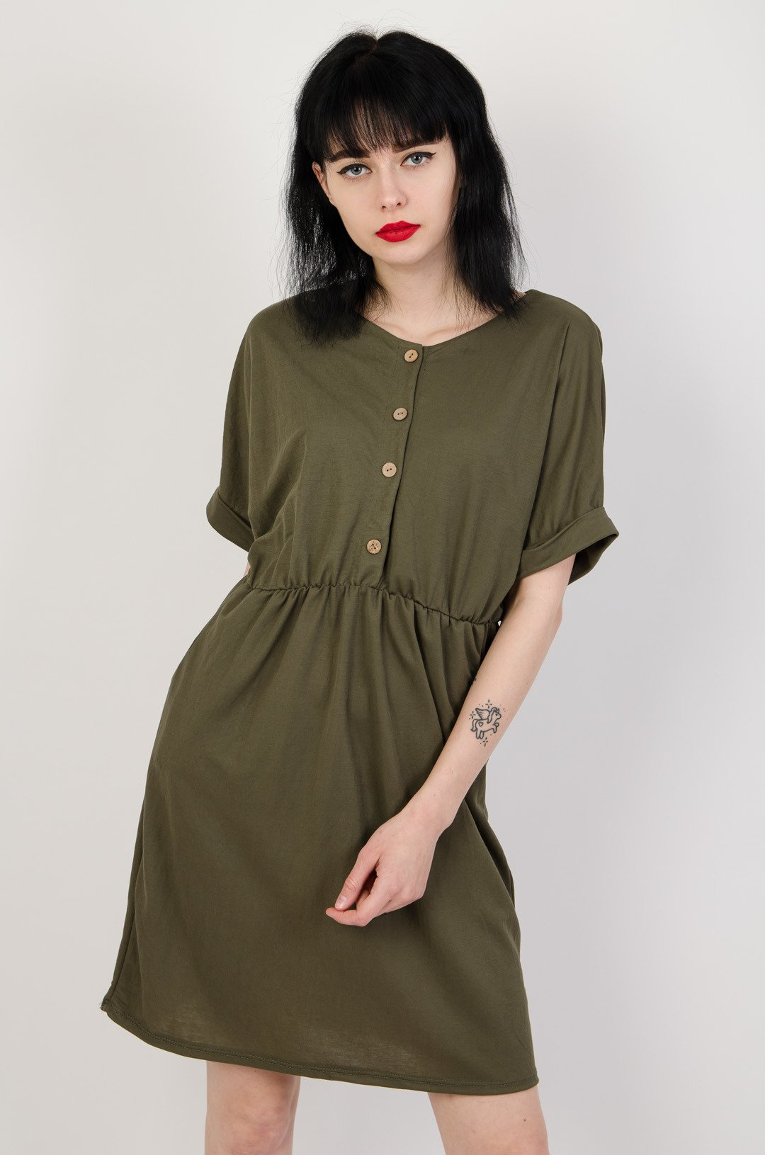 Zielona sukienka z gumą w pasie