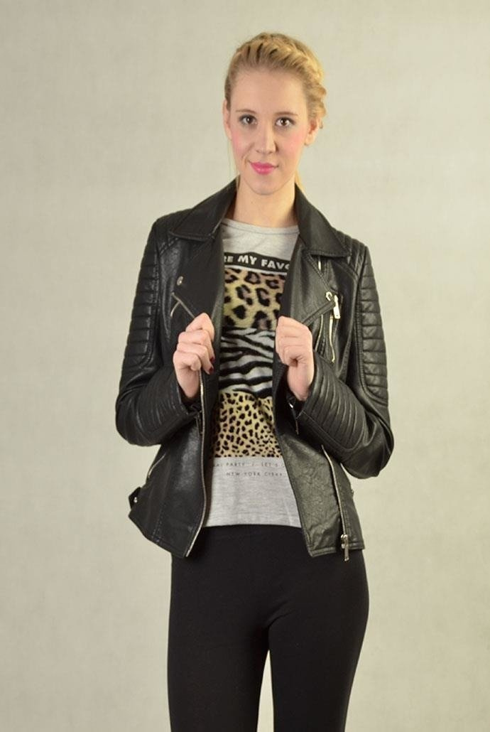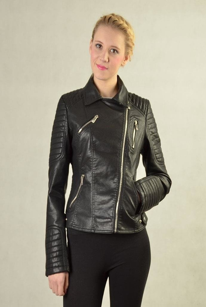 Elegancka i modna kurtka, wykonana ze skóry ekologicznej, z pikowaniami. Zapinana na srebrny, ozdobny zamek błyskawiczny. Z przodu 2 kieszenie. Idealna na nadchodzący sezon wiosenny.