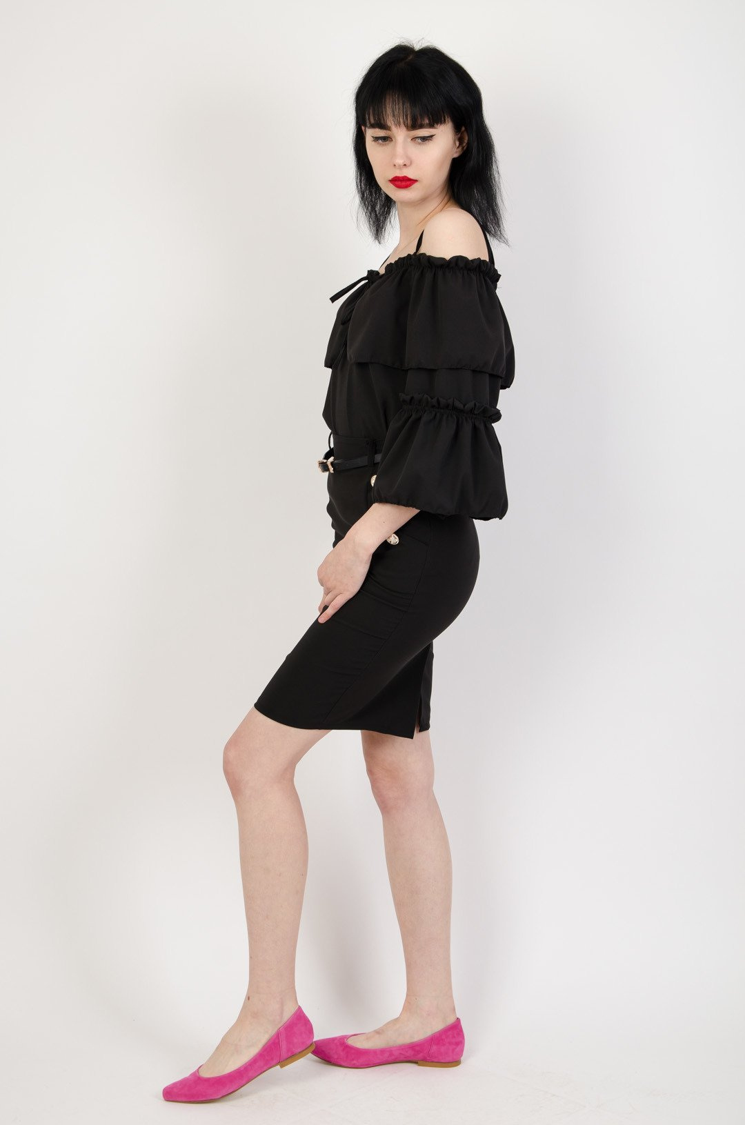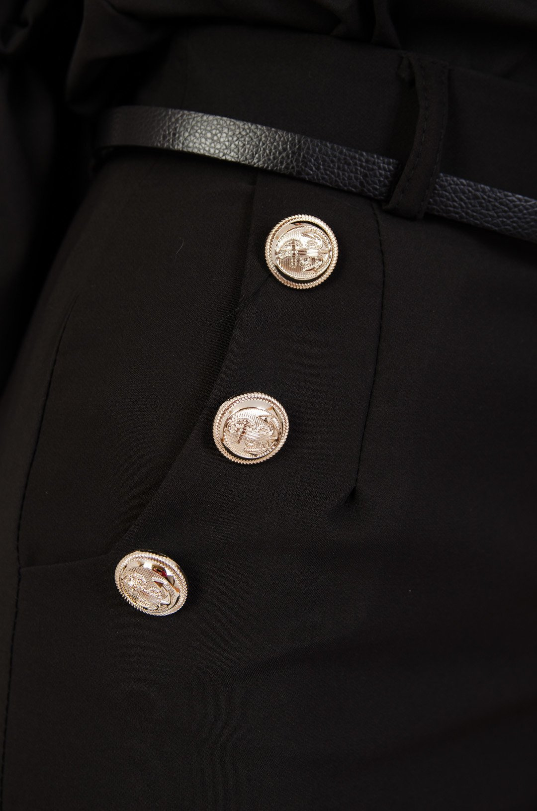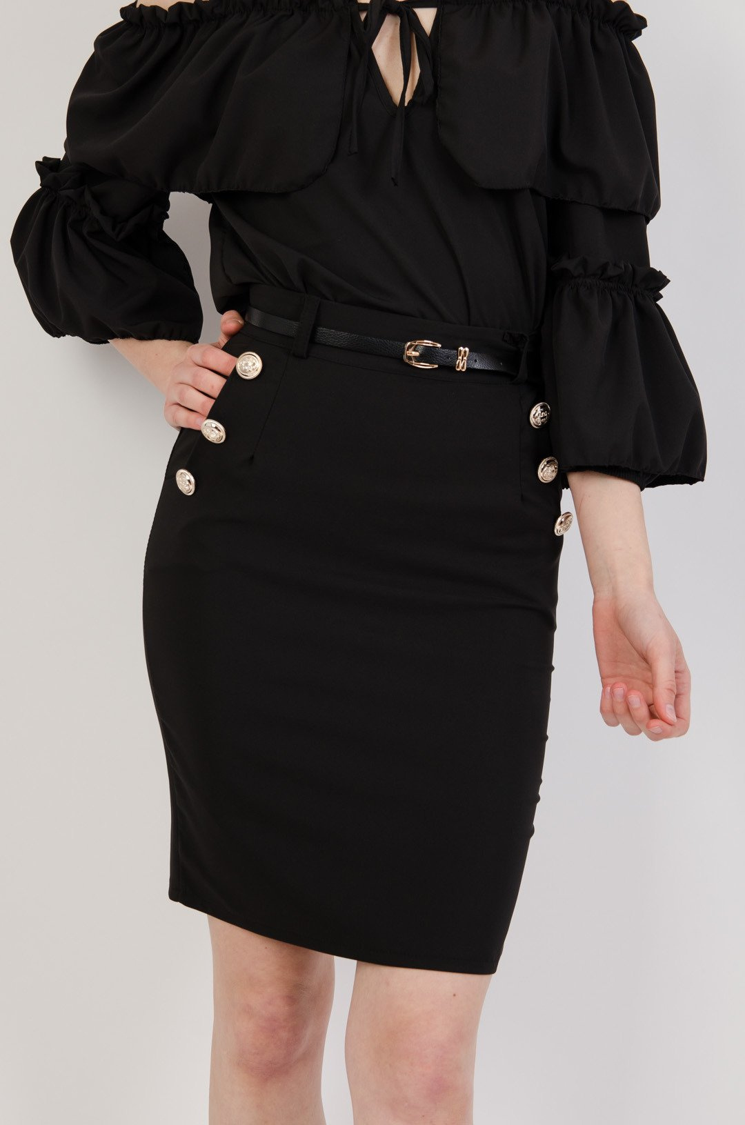 Czarna ołówkowa spódnica ze złotymi guzikami,z paskiem w zestawie