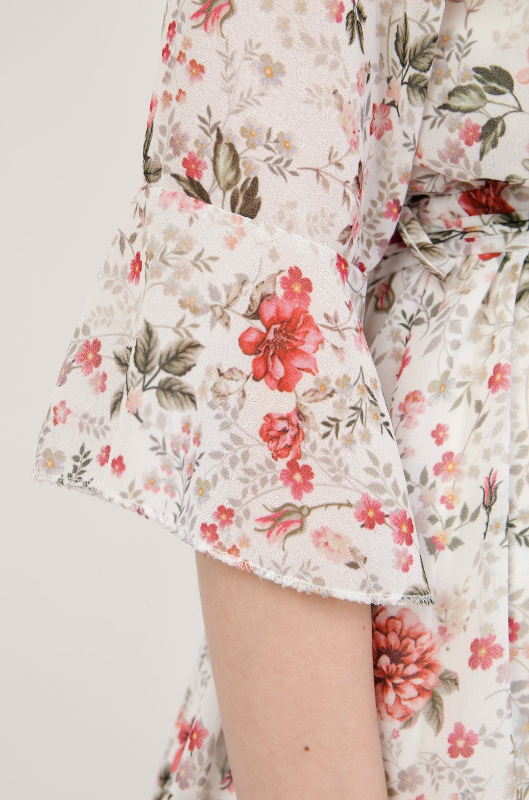 Biała zwiewna sukienka w drobny kwiatowy wzór z falbanami
