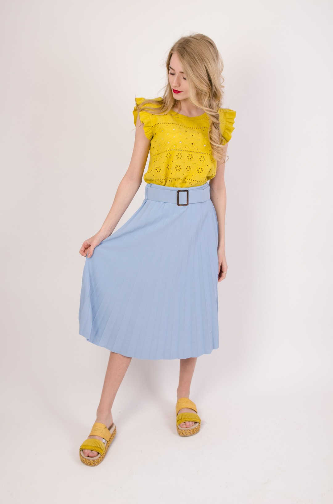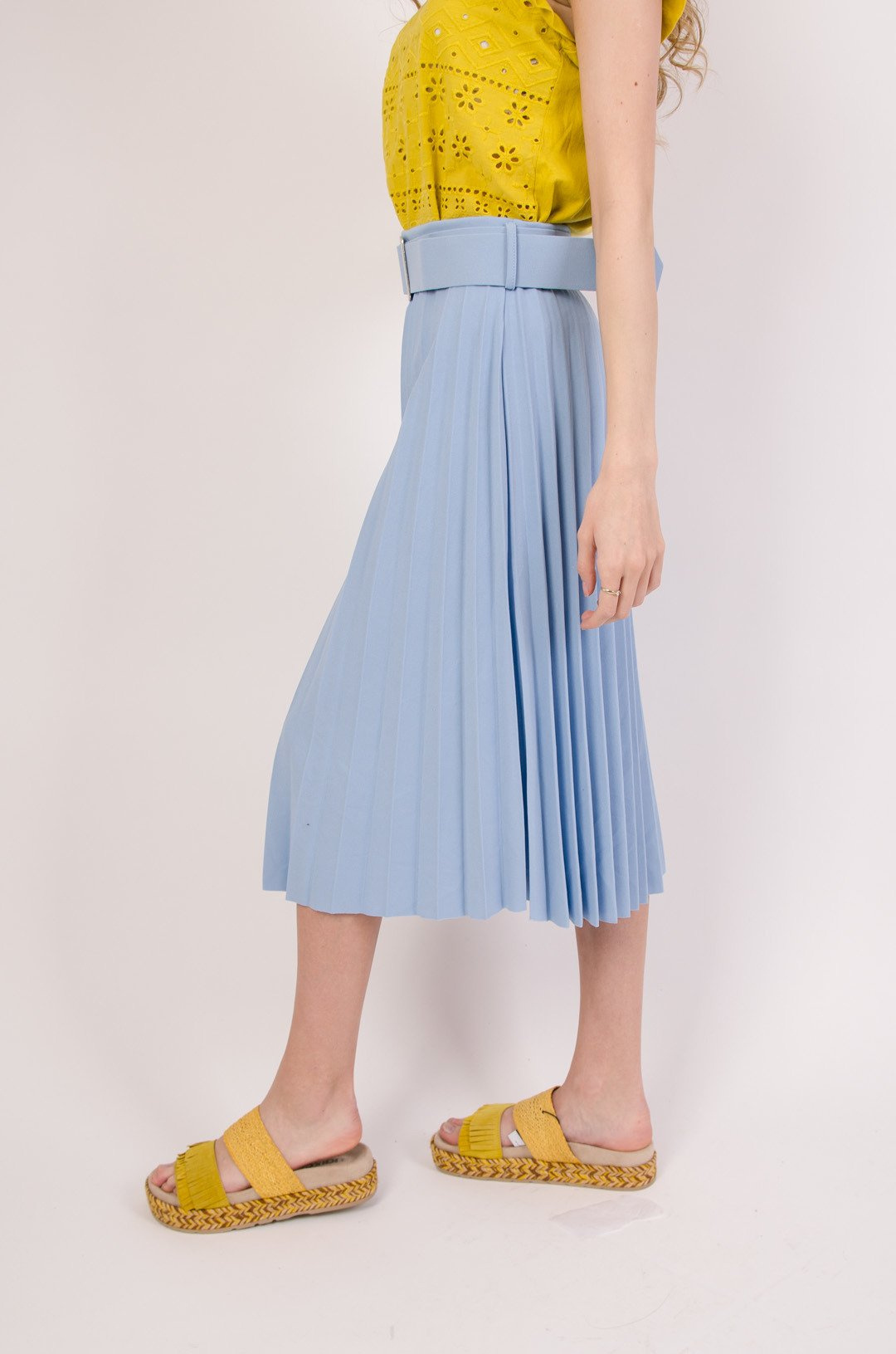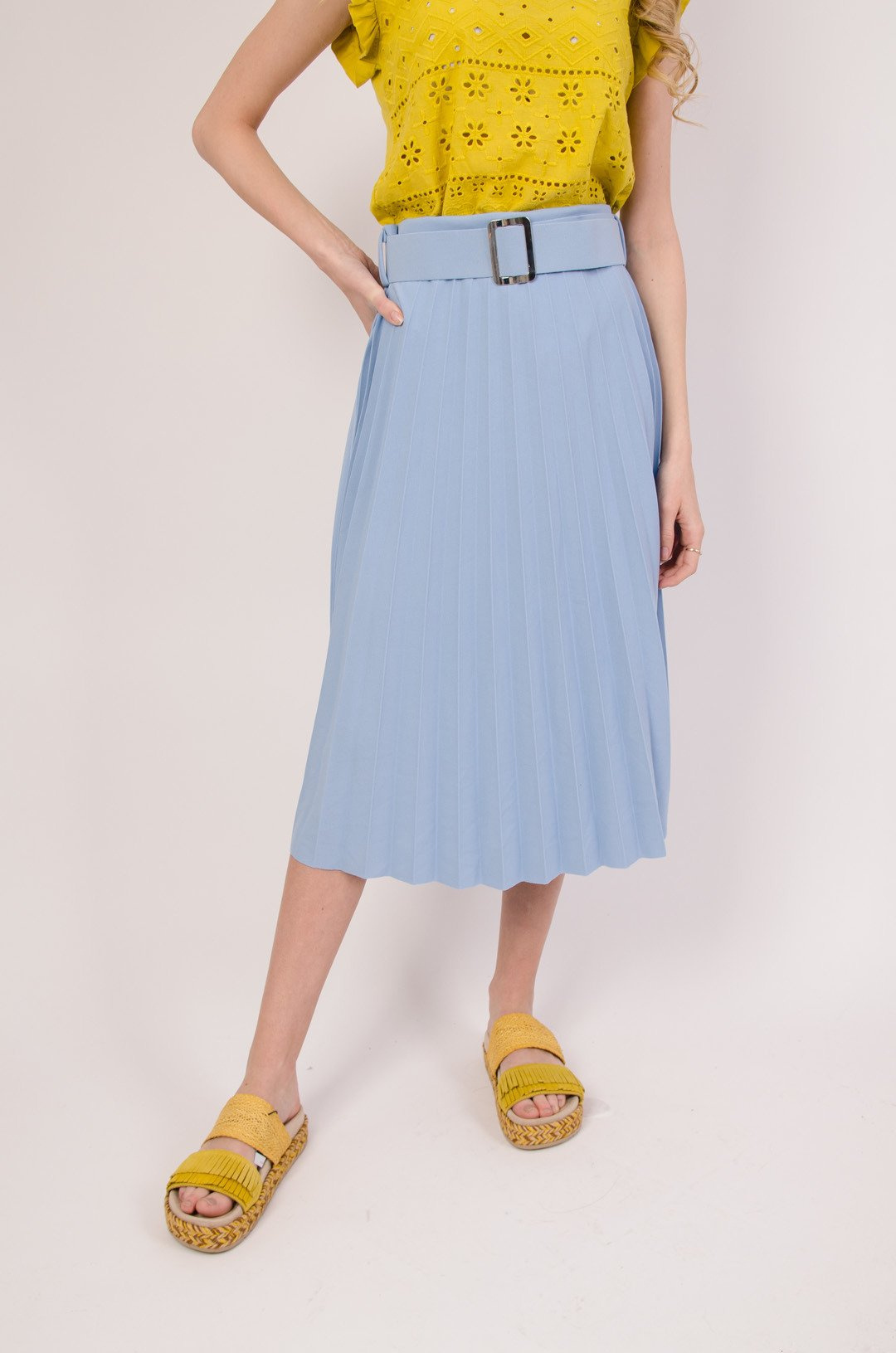 Plisowana spódnica z paskiem w kolorze niebieskim