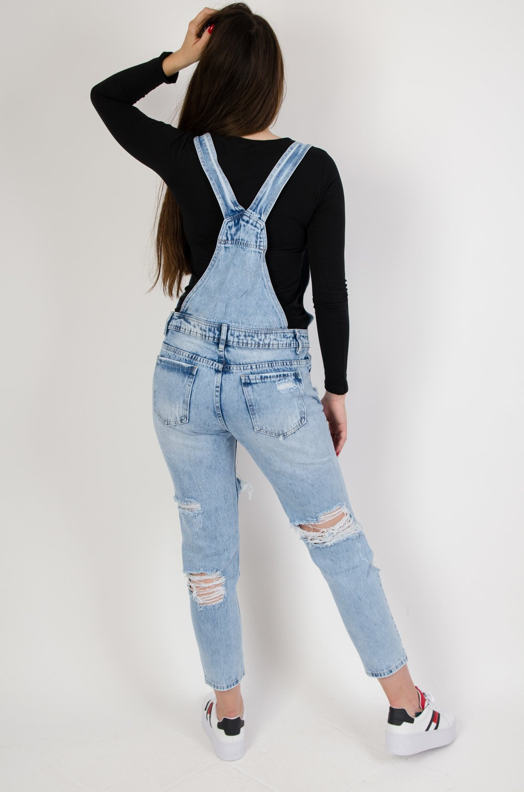 Jasno-Jeansowe ogrodniczki z dziurami zapinane na zamek