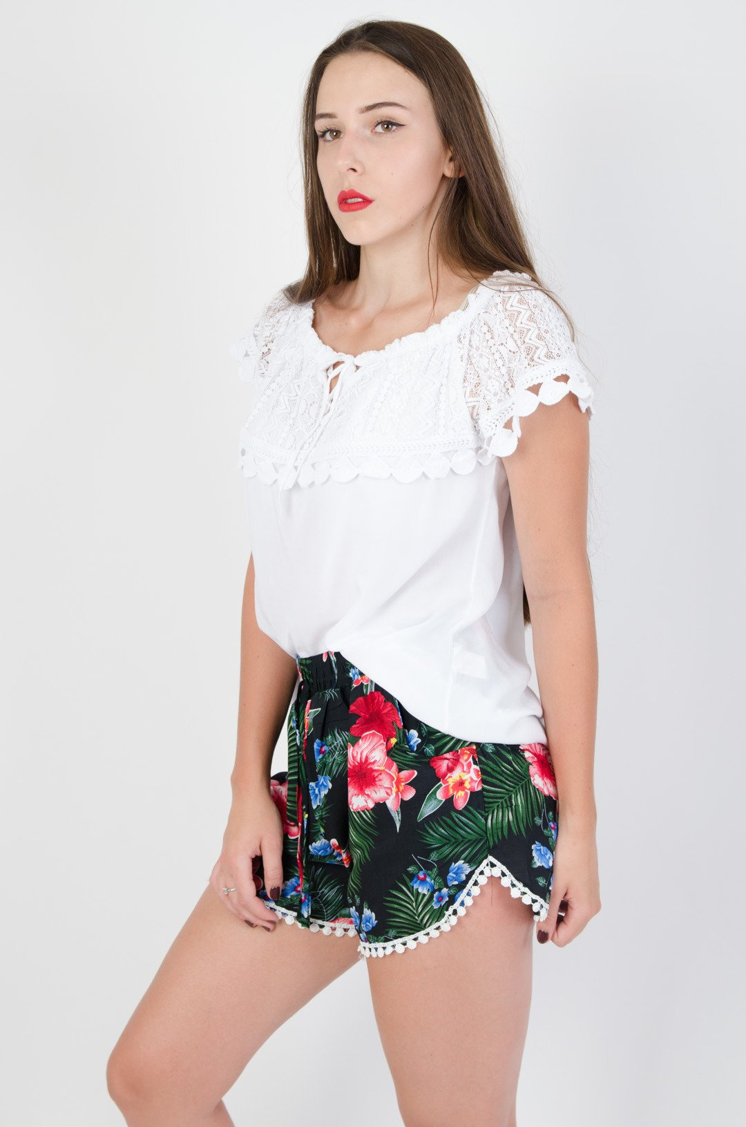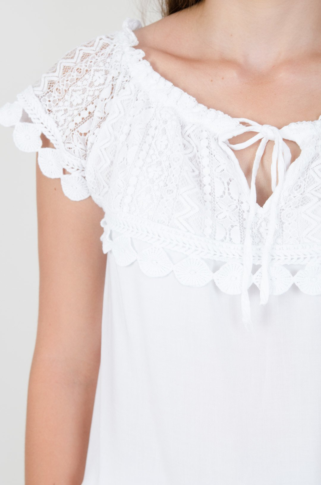 Biała bluzka hiszpanka z ażurowym dekoltem