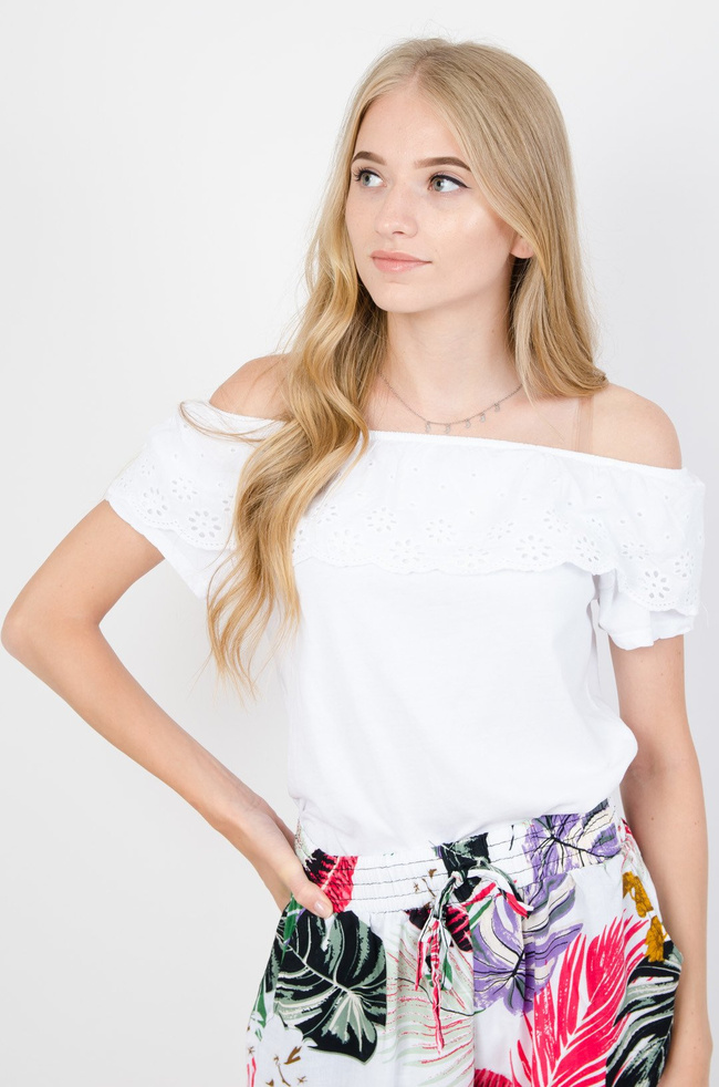 Biała bluzka z hiszpańskim ażurowym dekoltem