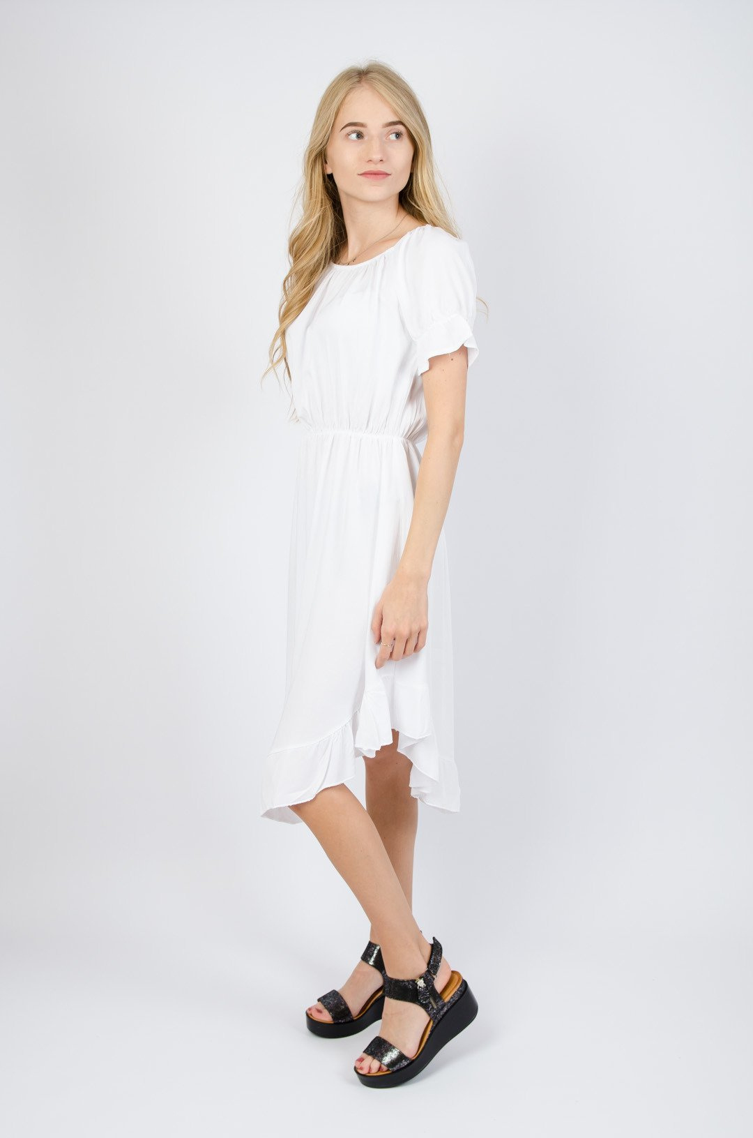 Biała asymetryczna sukienka z hiszpańskim dekoltem