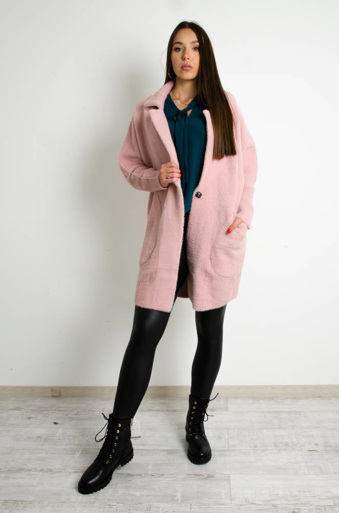 PŁASZCZ DŁUGI WEŁNIANY ALPAKA- RÓŻOWY