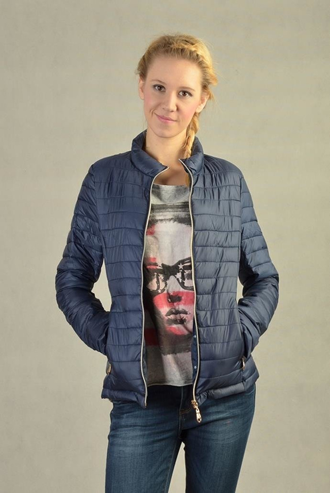 Ortalionowa kurtka pikowana, zapinana na zamek. Z przodu dwie kieszenie, wewnątrz materiał w gwiazdki.