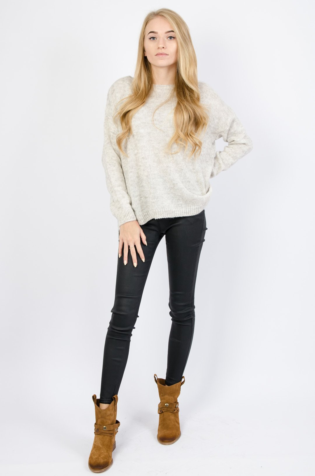 BEŻOWY SWETER Z ROZCIĘCIEM Z TYŁU