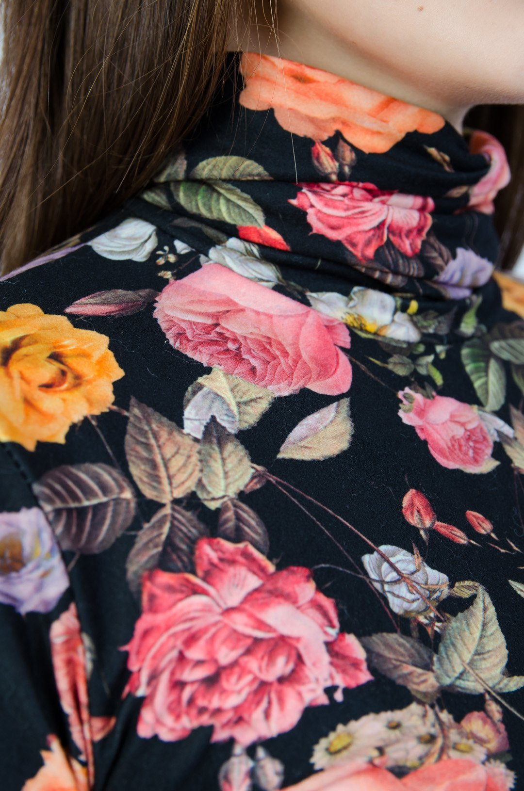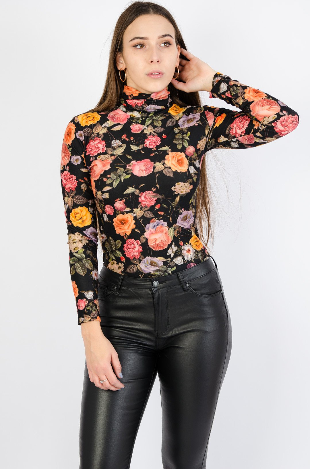 CZARNA BLUZKA Z GOLFEM W KWIATY