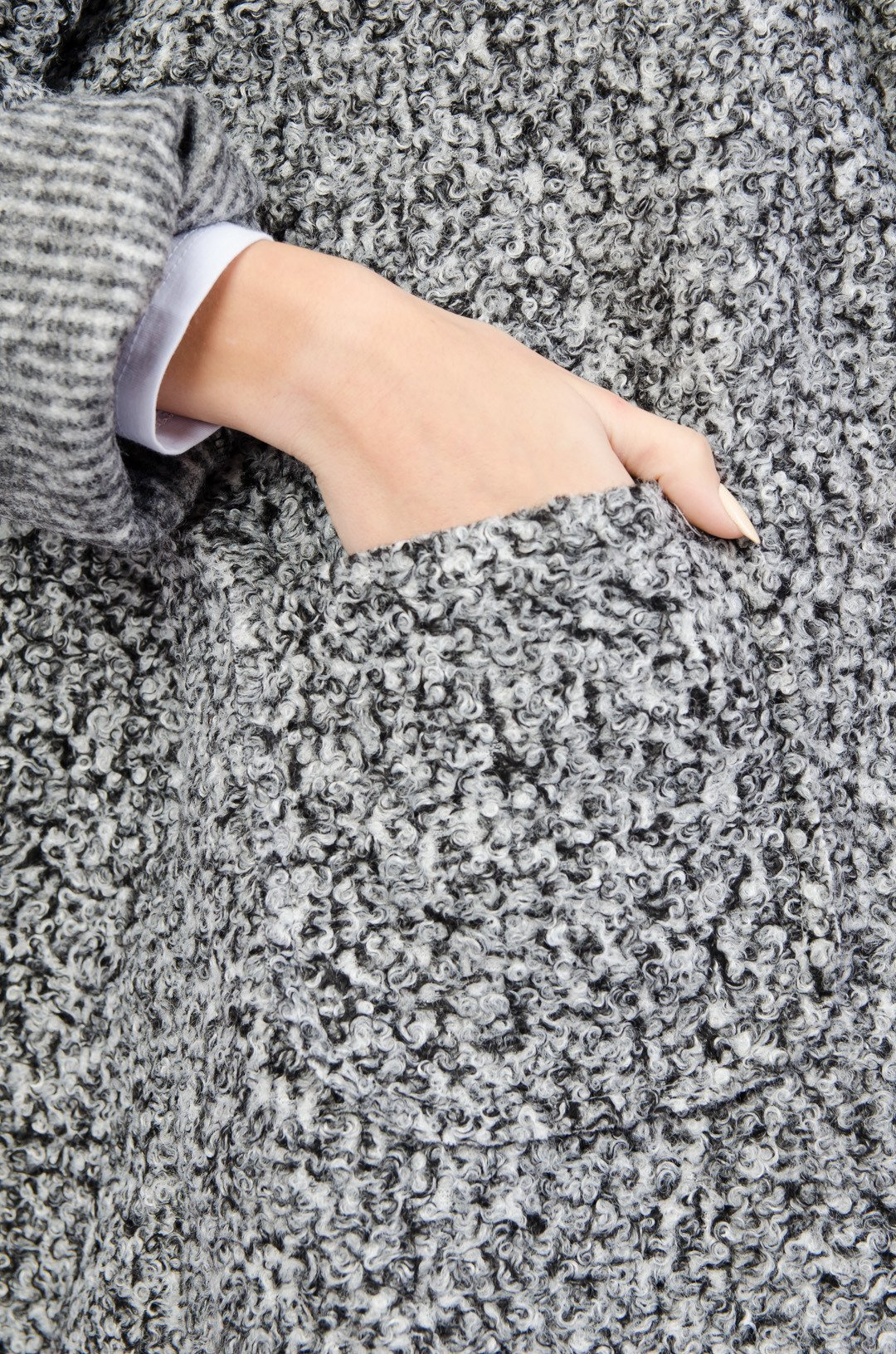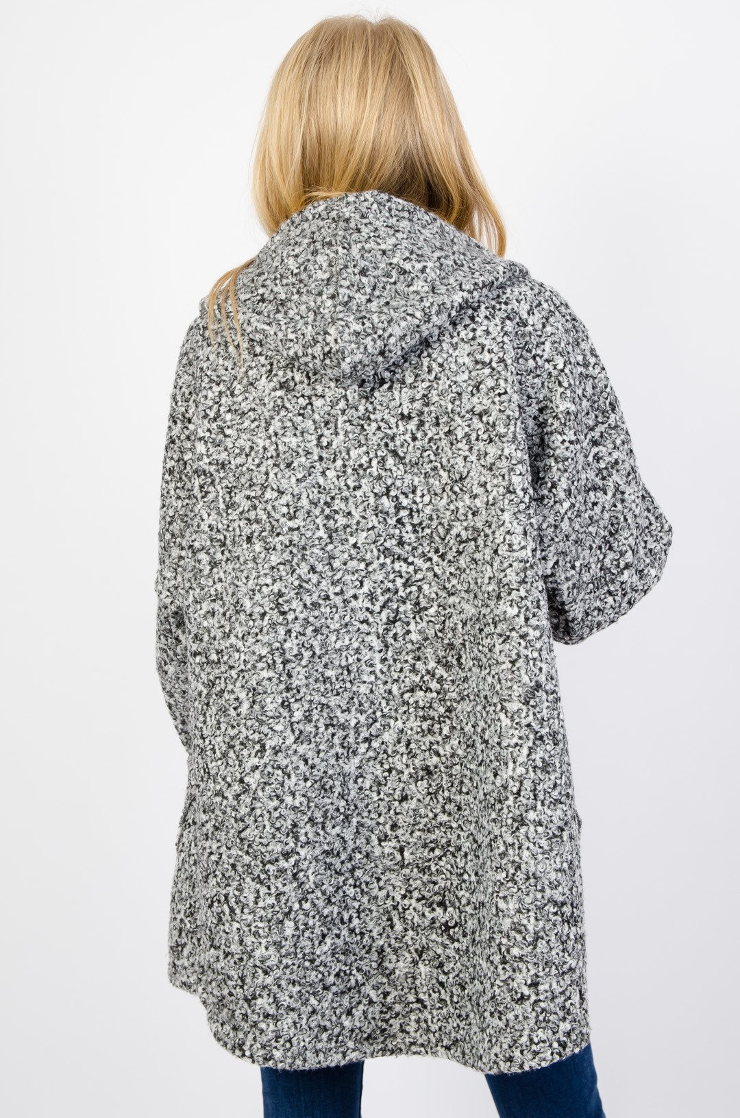 Ciemnoszary przejściowy płaszcz z asymetrycznym dołem