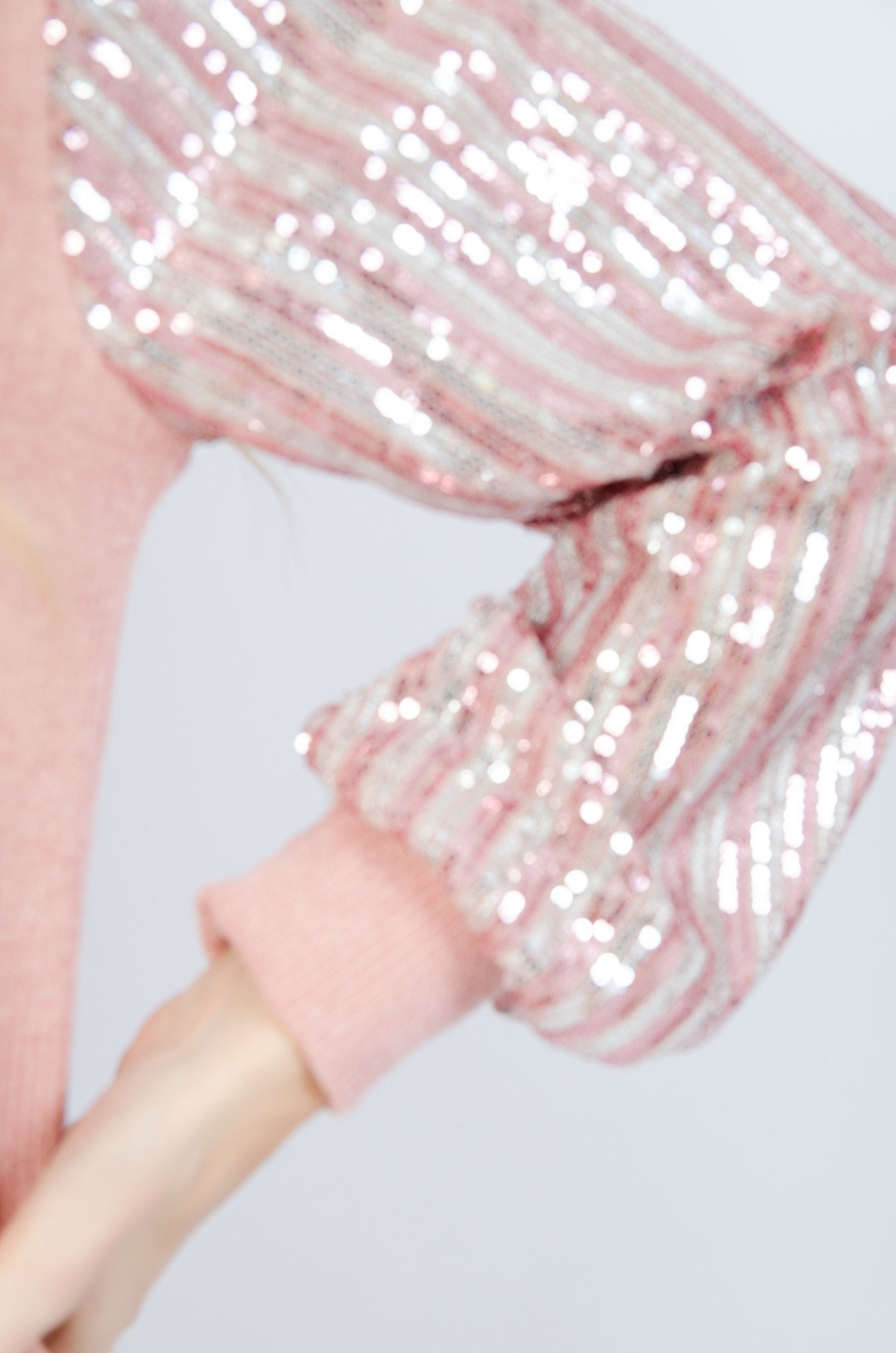 RÓŻOWA SUKIENKA Z CEKINOWYMI RĘKAWAMI