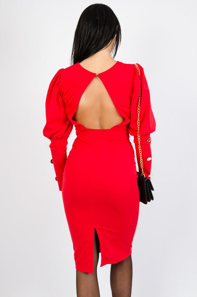 Czerwona ołówkowa sukienka z odkrytymi plecami