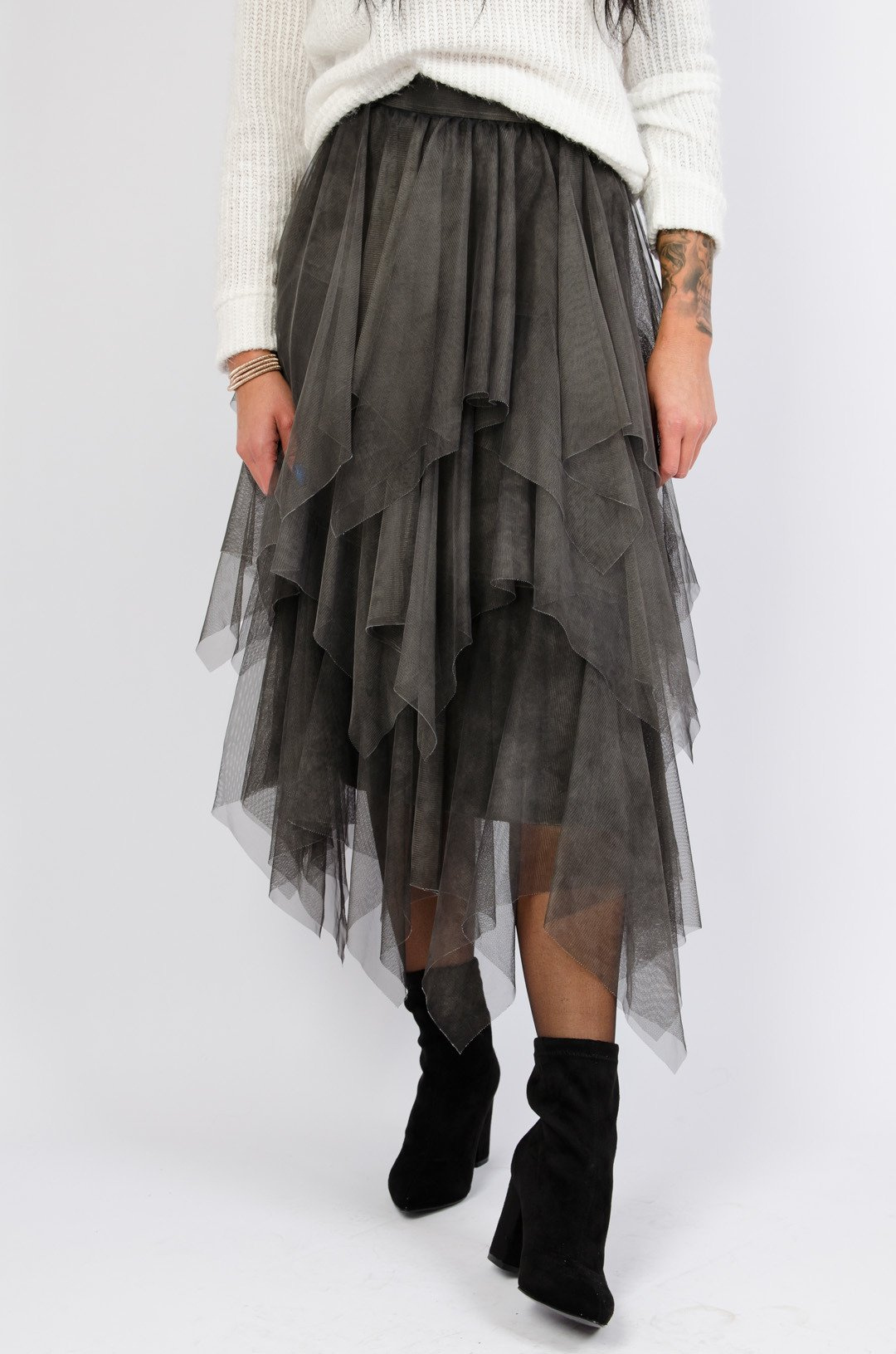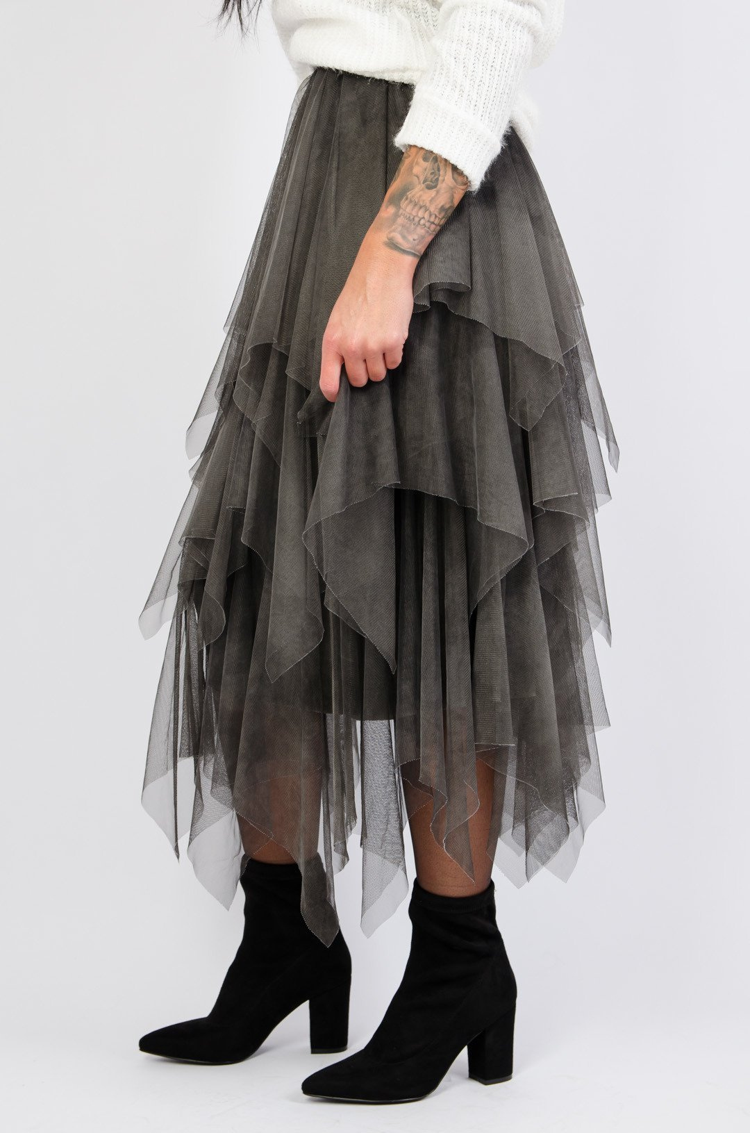 SZARA WARSTWOWA SPÓDNICA Z TIULU Z GUMĄ W PASIE