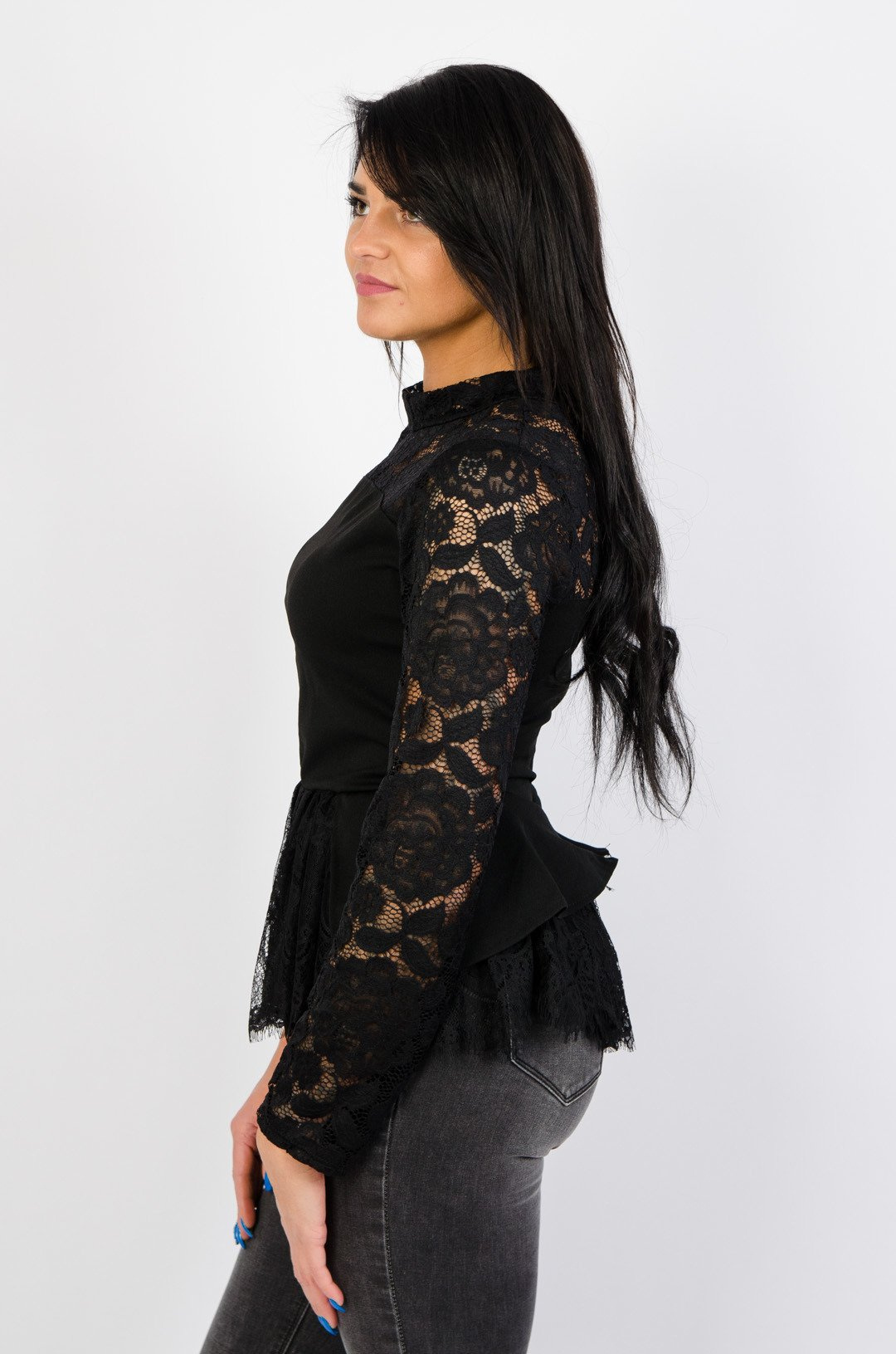 CZARNA KORONKOWA BLUZKA Z BASKINKĄ - ZAMEK Z TYŁU