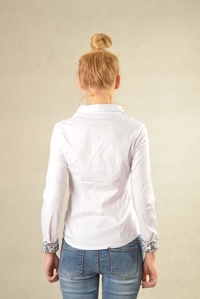 Elegancka koszula, zapinana na guziczki. Mankiety w kwiaty