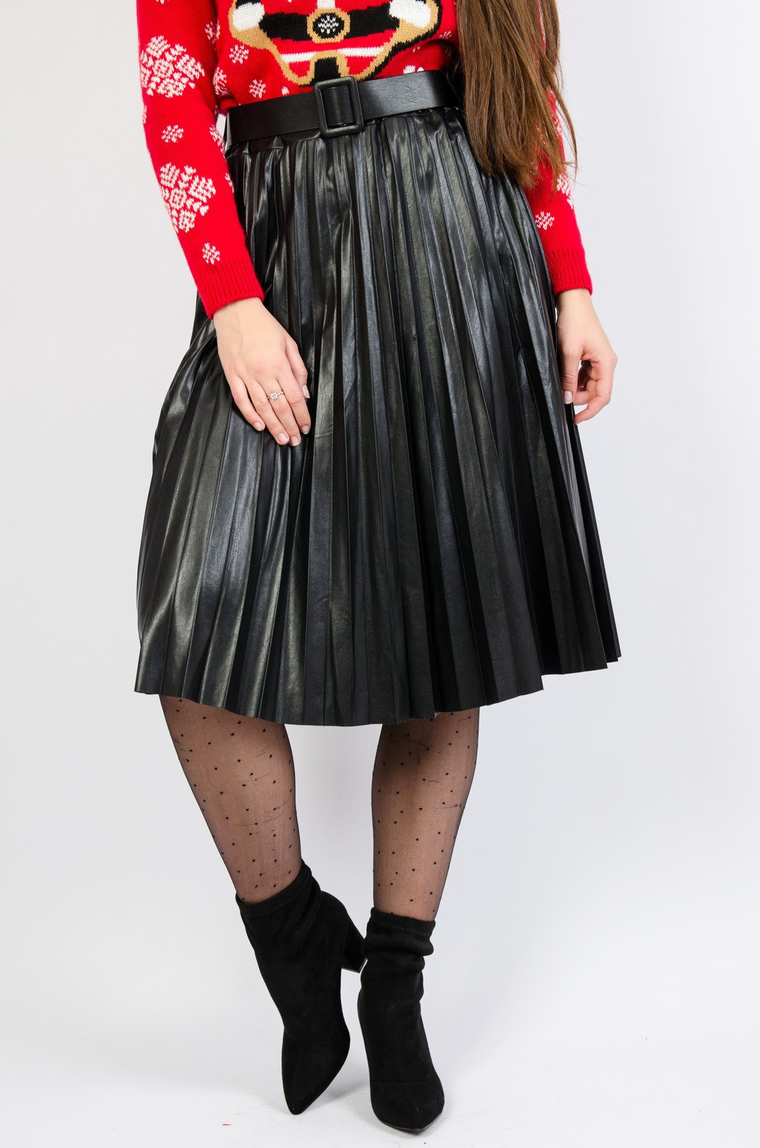 CZARNA PLISOWANA SPÓDNICA Z IMITACJI SKÓRY