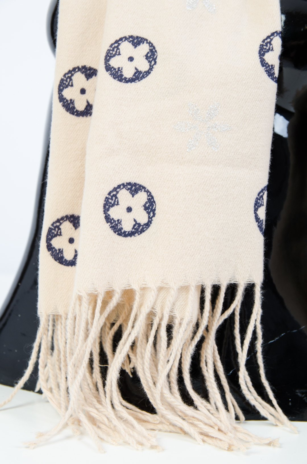 BEŻOWY SZAL Z APLIKACJĄ W KWIATY