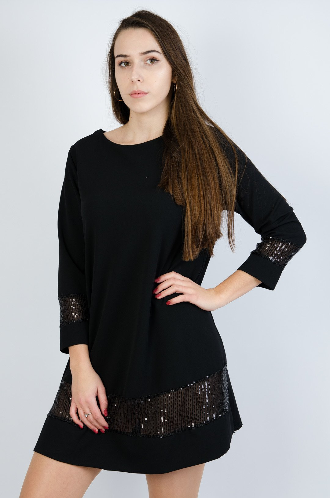 SUKIENKA TRAPEZOWA Z CEKINAMI W KOLORZE CZARNYM