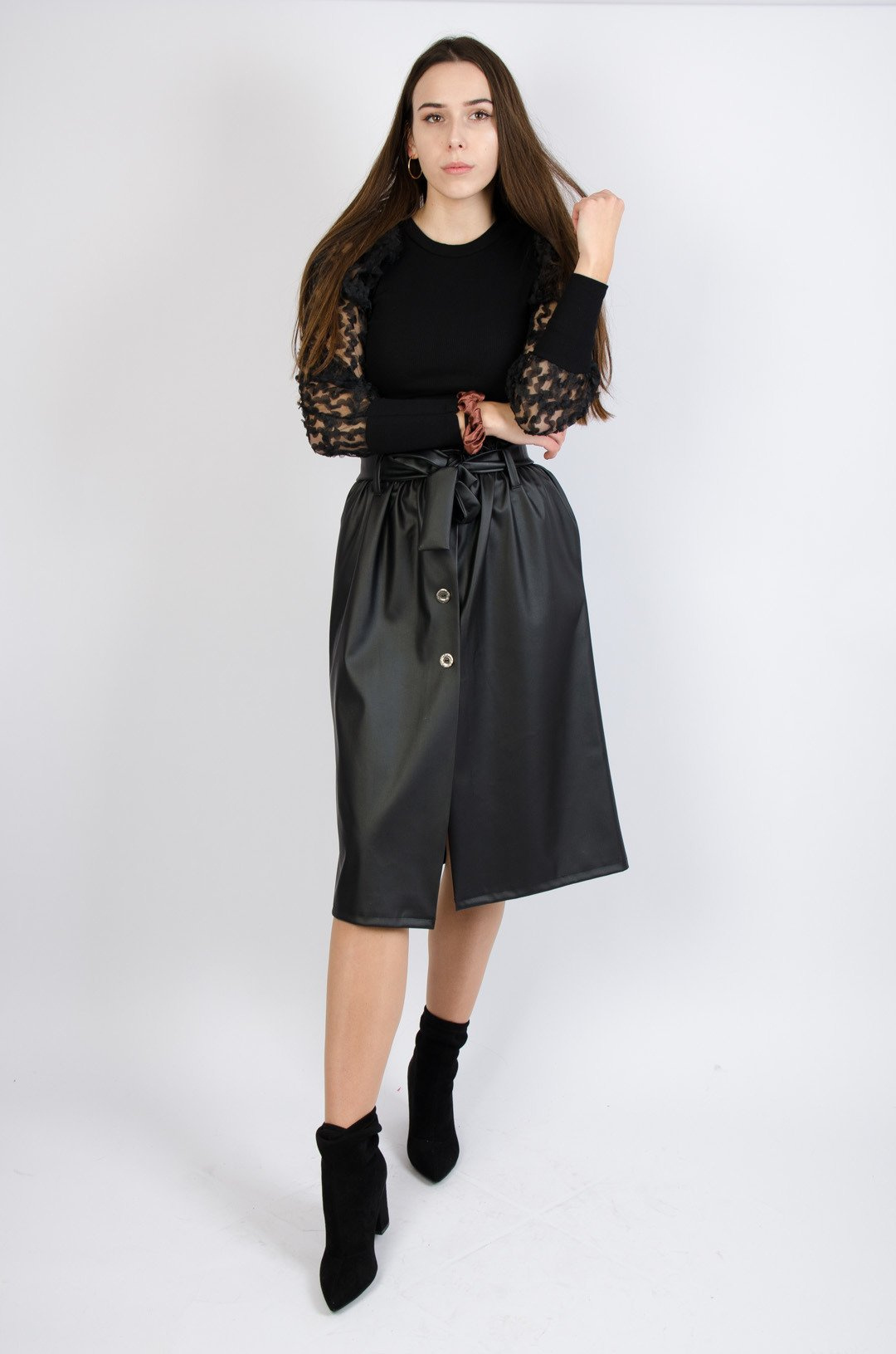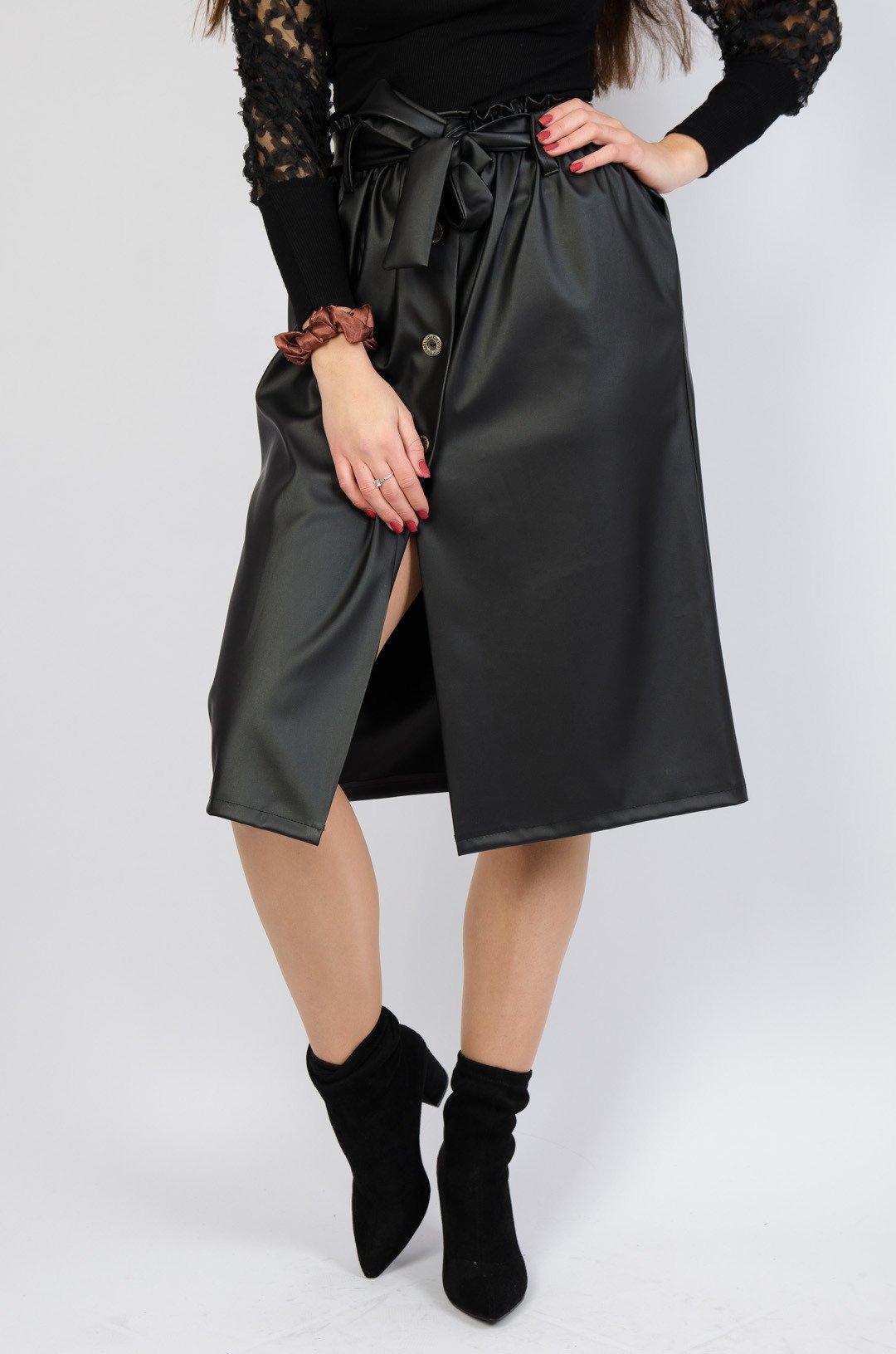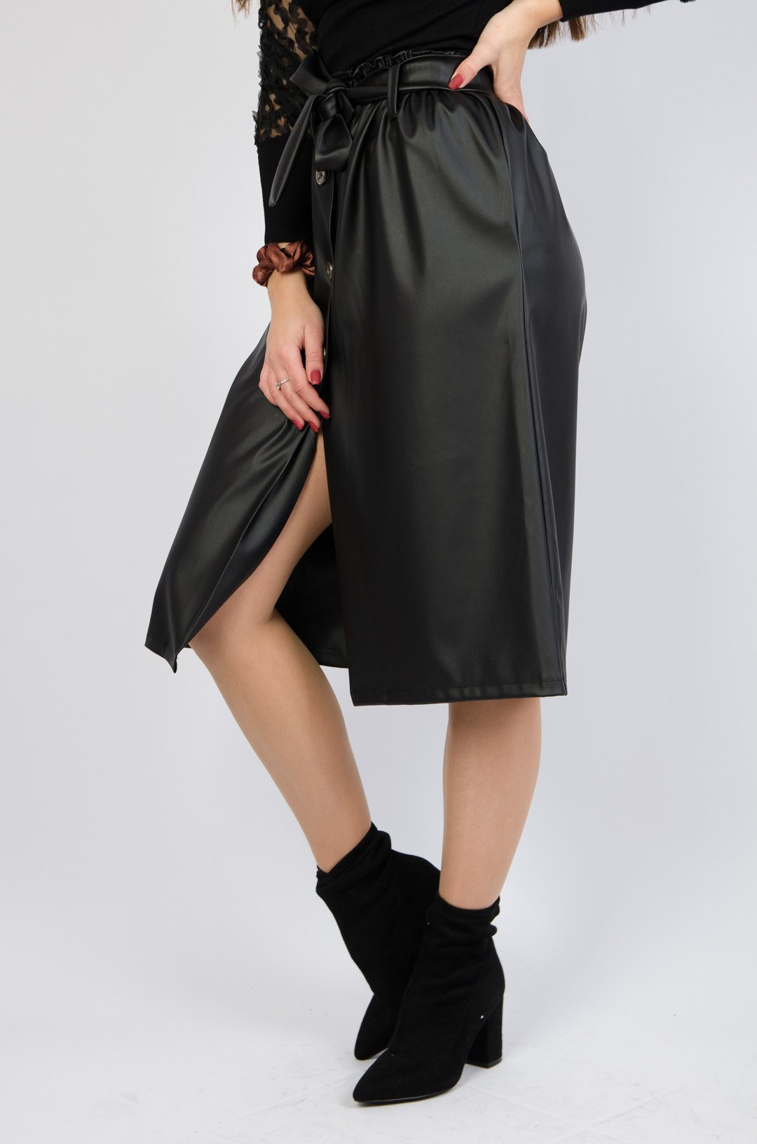 WOSKOWANA SPÓDNICA MIDI W KOLORZE CZARNYM