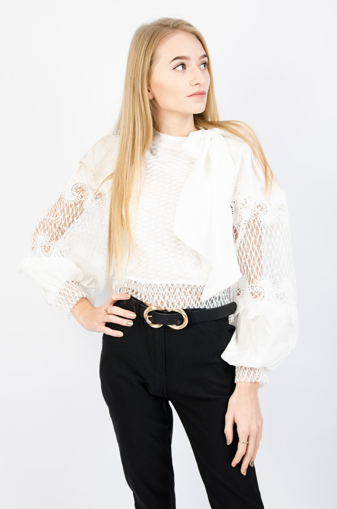 BIAŁA AŻUROWA BLUZKA Z BUFIASTYMI RĘKAWAMI