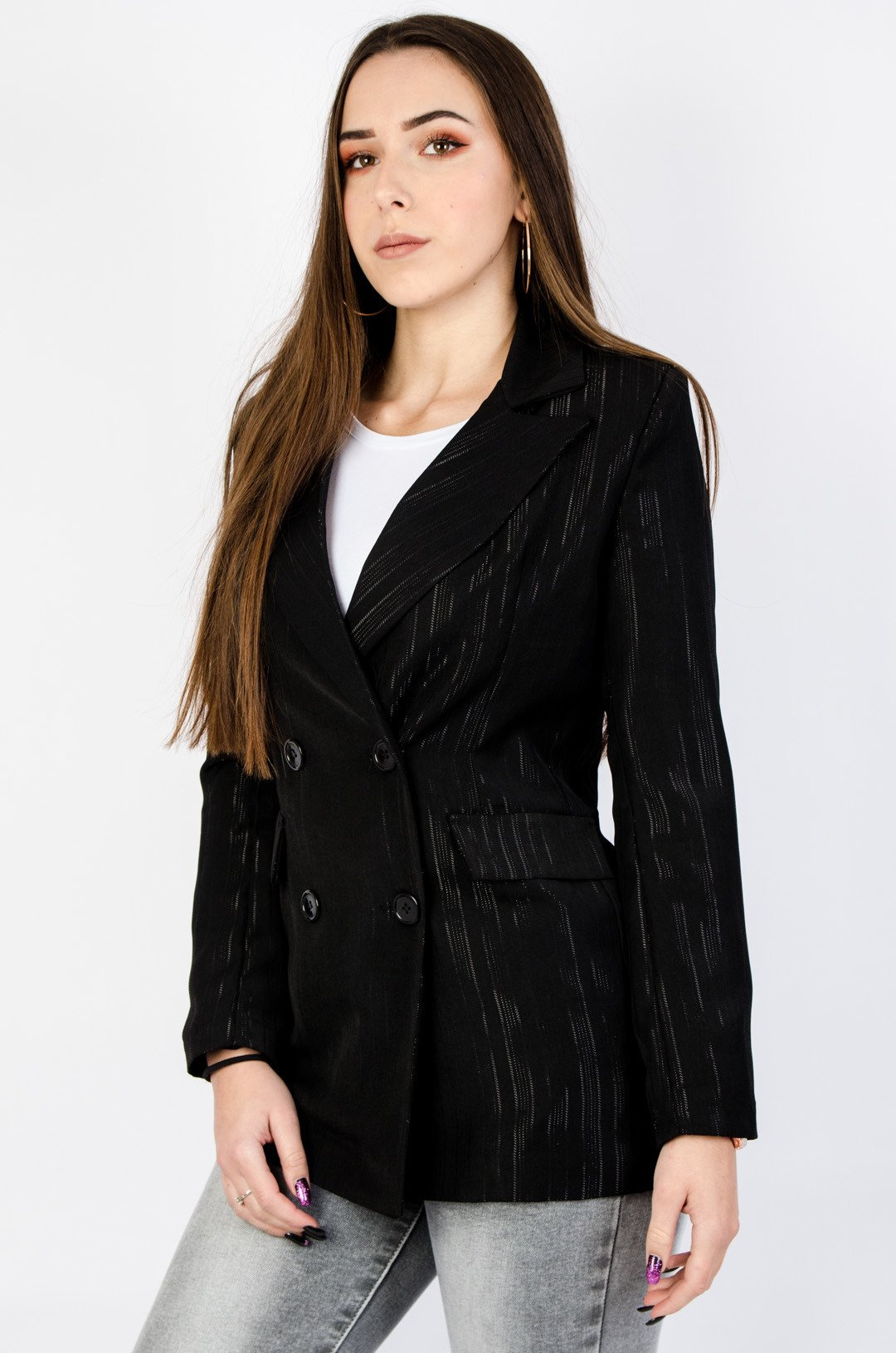 MARYNARKA W KOLORZE CZARNYM PRZEPLATANA SREBRNĄ NICIĄ