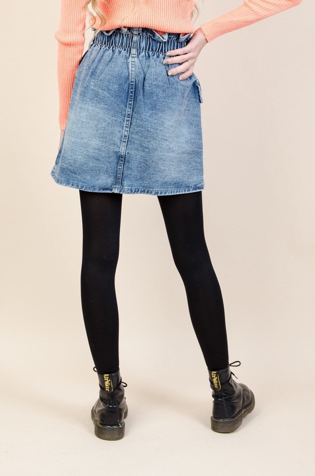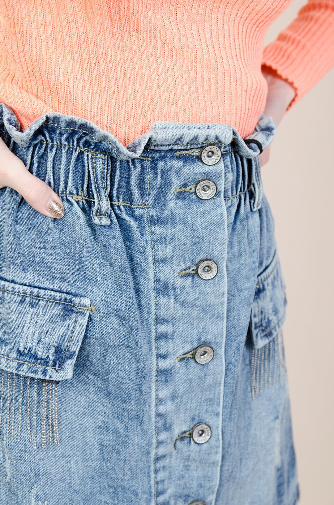Jeansowa spódnica zapinana na guziki z łańcuszkami