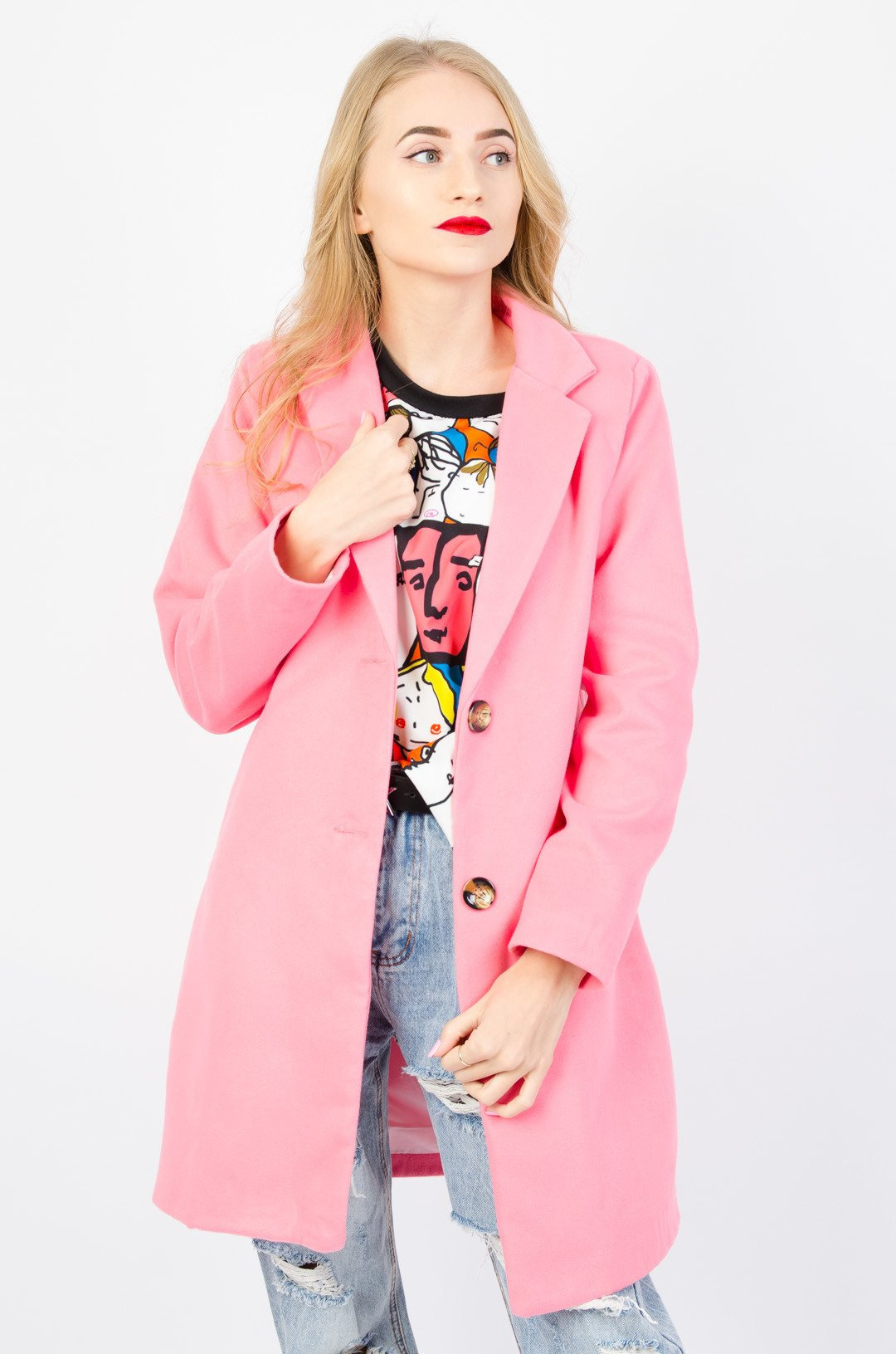 WIOSENNY PŁASZCZ W PASTELOWYM ODCIENIU - RÓŻOWY