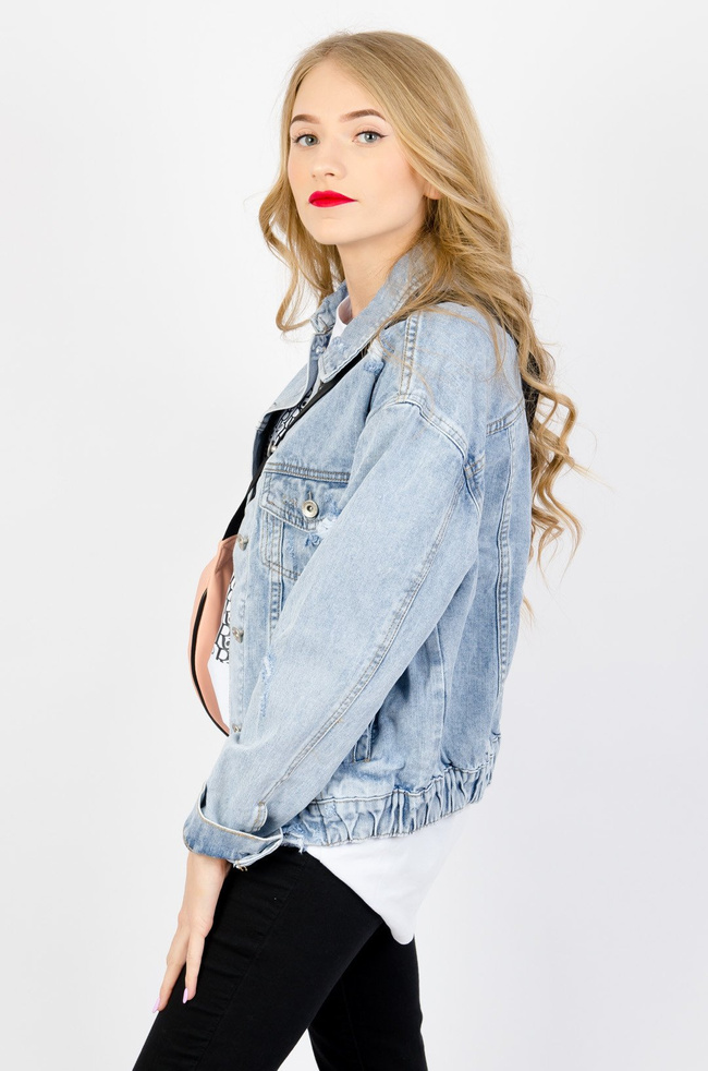 WIOSENNA KURTKA JEANSOWA BOMBERKA Z PRZETARCIAMI