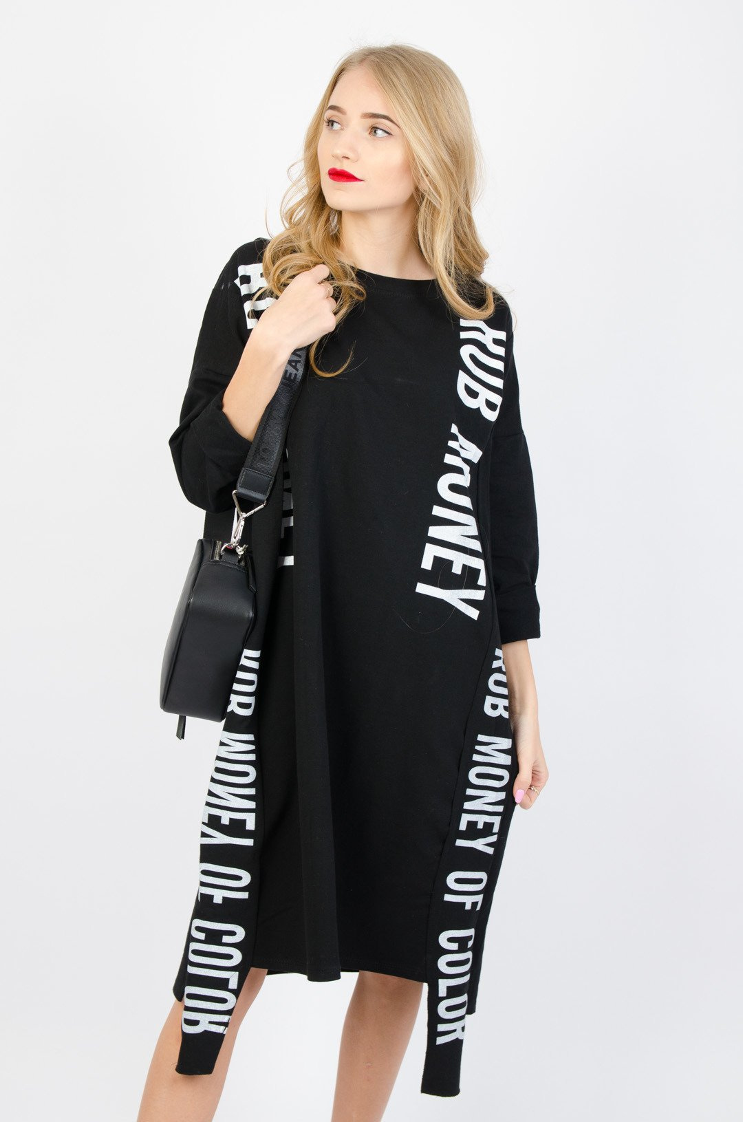 ASYMETRYCZNA DZIANINOWA SUKIENKA Z NAPISEM "ROB MONEY"