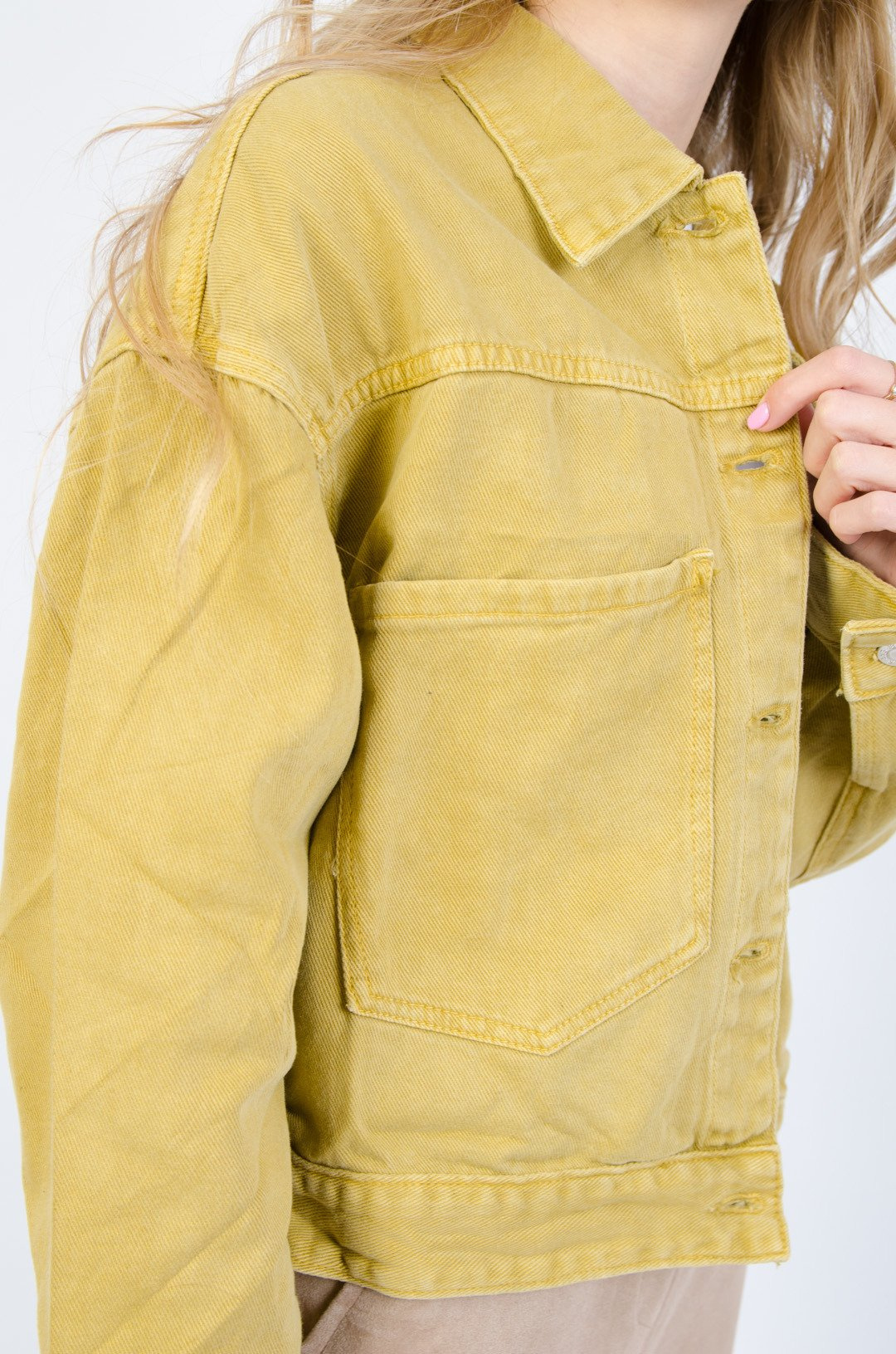 MUSZTARDOWA SZTRUKSOWA KURTKA Z KIESZENIAMI
