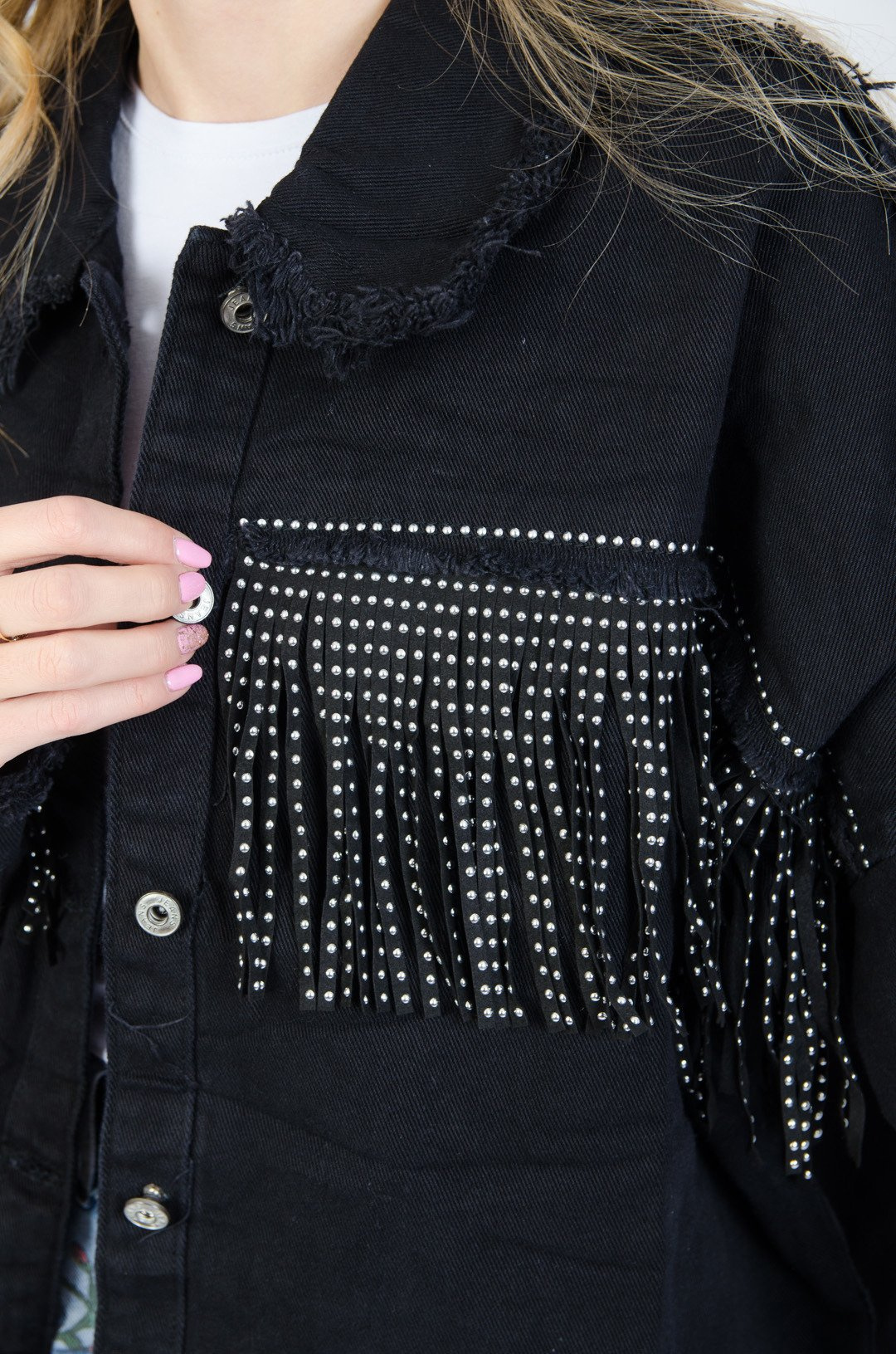 CZARNA KURTKA JEANSOWA Z FRĘDZLAMI (S-L)