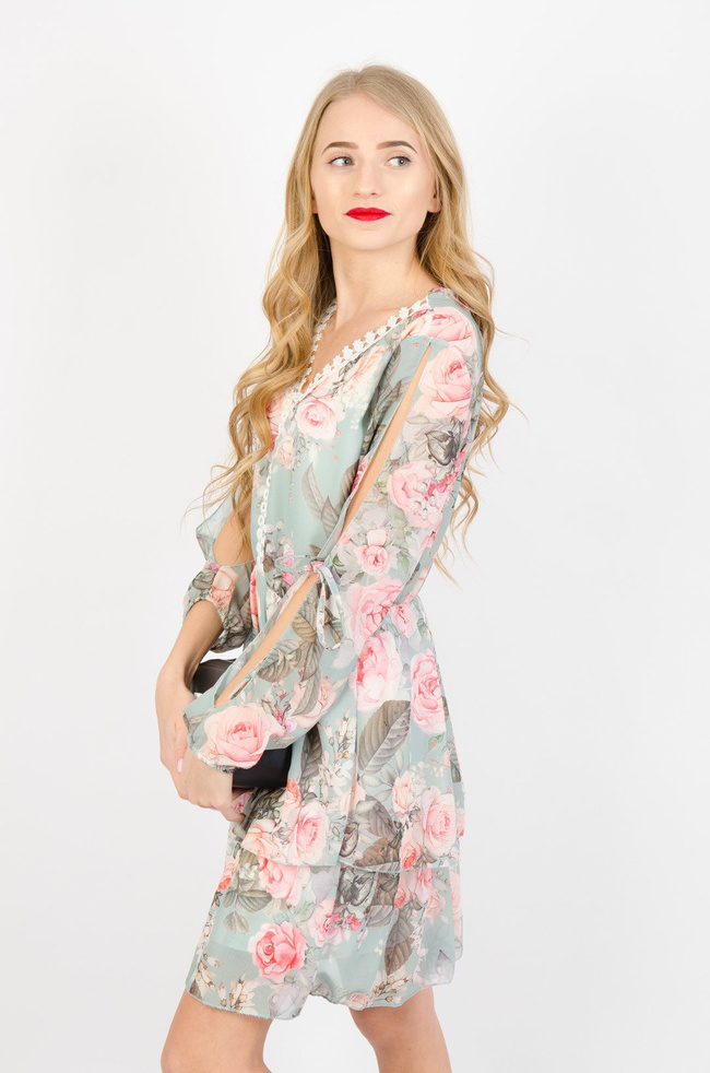 SUKIENKA W KWIATY W ODCIENIU PASTELOWEJ ZIELENI