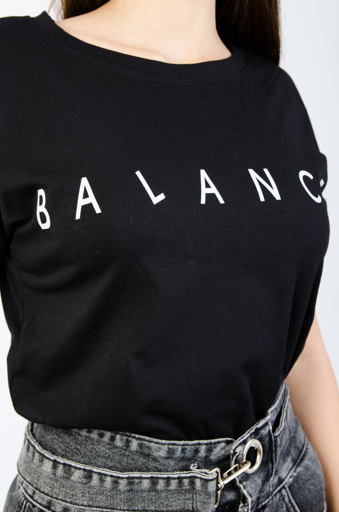CZARNY T-SHIRT Z NAPISEM BALANCE