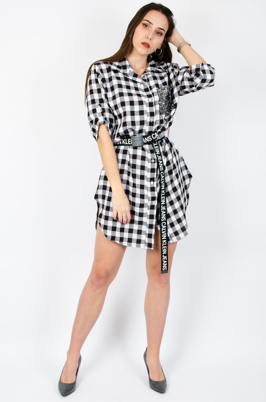 SUKIENKA KOSZULOWA W KRATĘ
